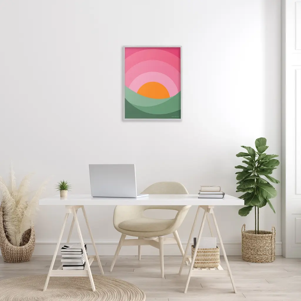 Stupell Green & Pink Landscape Framed Giclee Art Design By Carrie Cantwell - 24 X 30 - Grey