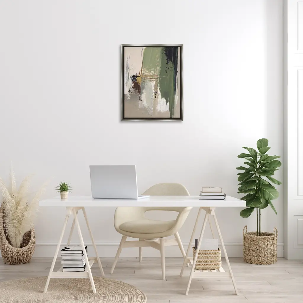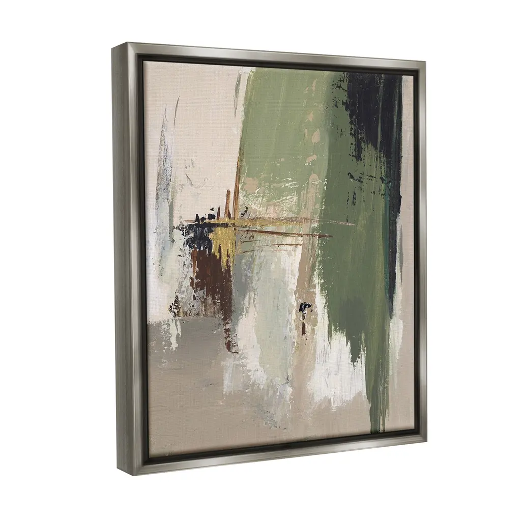 Stupell Green & Tan Brush Strokes Framed Floater Canvas Wall Art Design By Patricia Pinto - 25 X 31 - Grey