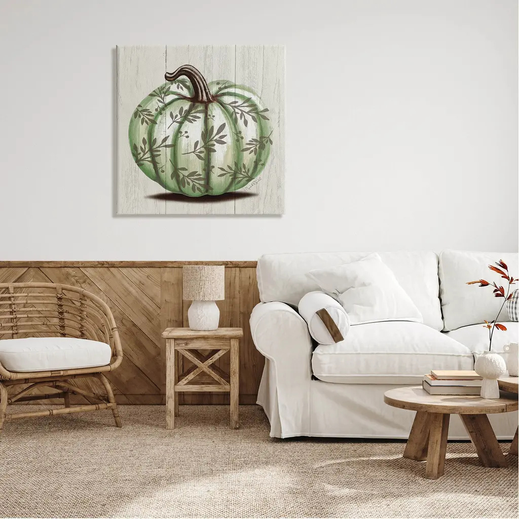 Proudly made in the USA, Our stretched canvas is created with the highest standards. We use only the highest quality inks and canvas on our in house Mimaki printers, and then hand cut and stretch each piece over a 1.5 inch thick wooden frame for hanging. The art comes ready to hang with no installation required. Not to mention, at this size, it is sure to be the focal point of any room!Features:Dimensions: 17 x 1.5 x 17 InchesStretched Canvas Sizes IncludeStandard: 17 x 1.5 x 17Large: 24 x 1.5 x 24X-Large: 30 x 1.5 x 30Oversized: 36 x 1.5 x 36Wall Art is Ready to Hang - No Installation or Hardware Needed. For Easy Set Up Lean or Layer Artwork on Shelf or Against Wall.Our stretched canvas is created with the highest standards. We use only the highest quality inks and canvas on our in house Mimaki printers, and then hand cut and stretch each piece over a 1.5 inch thick wooden frame for hanging. Made In USA.Artwork Relates To: Pumpkin; Plant; Gourd, Pattern, Botanical, LeafDesign by Elizabeth Tyndall