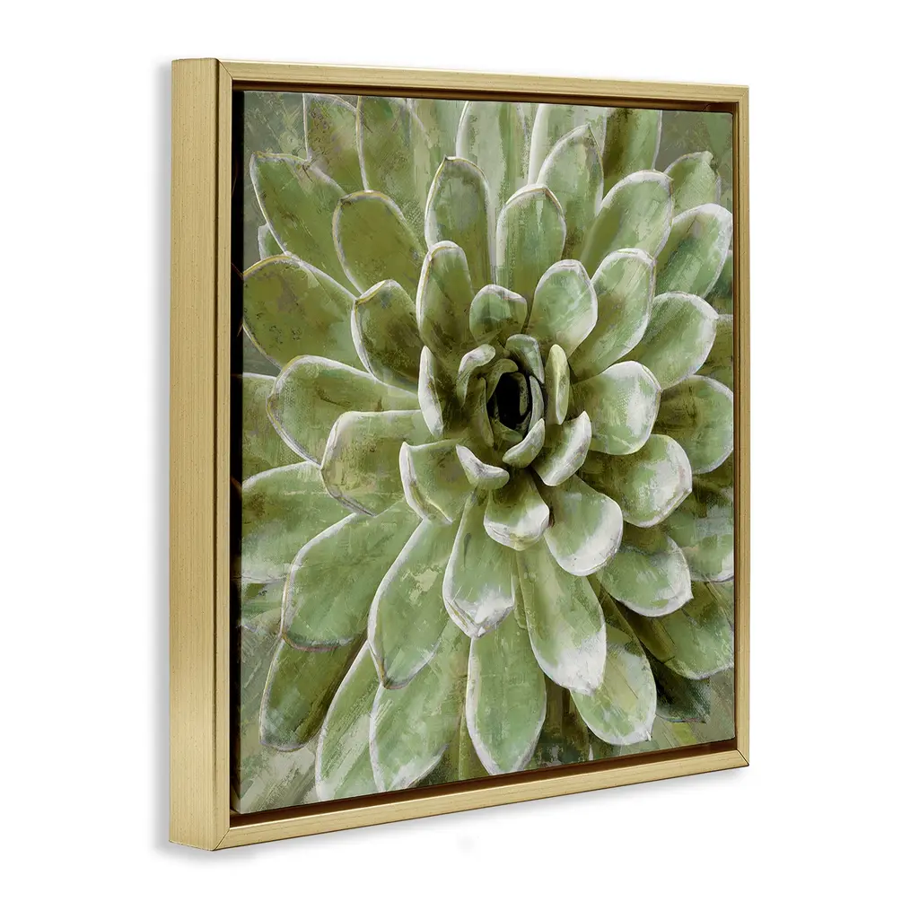 Stupell Green Botanical Succulent Bloom Framed Floater Canvas Wall Art Design By Daphne Polselli - 25 X 25 - Gold