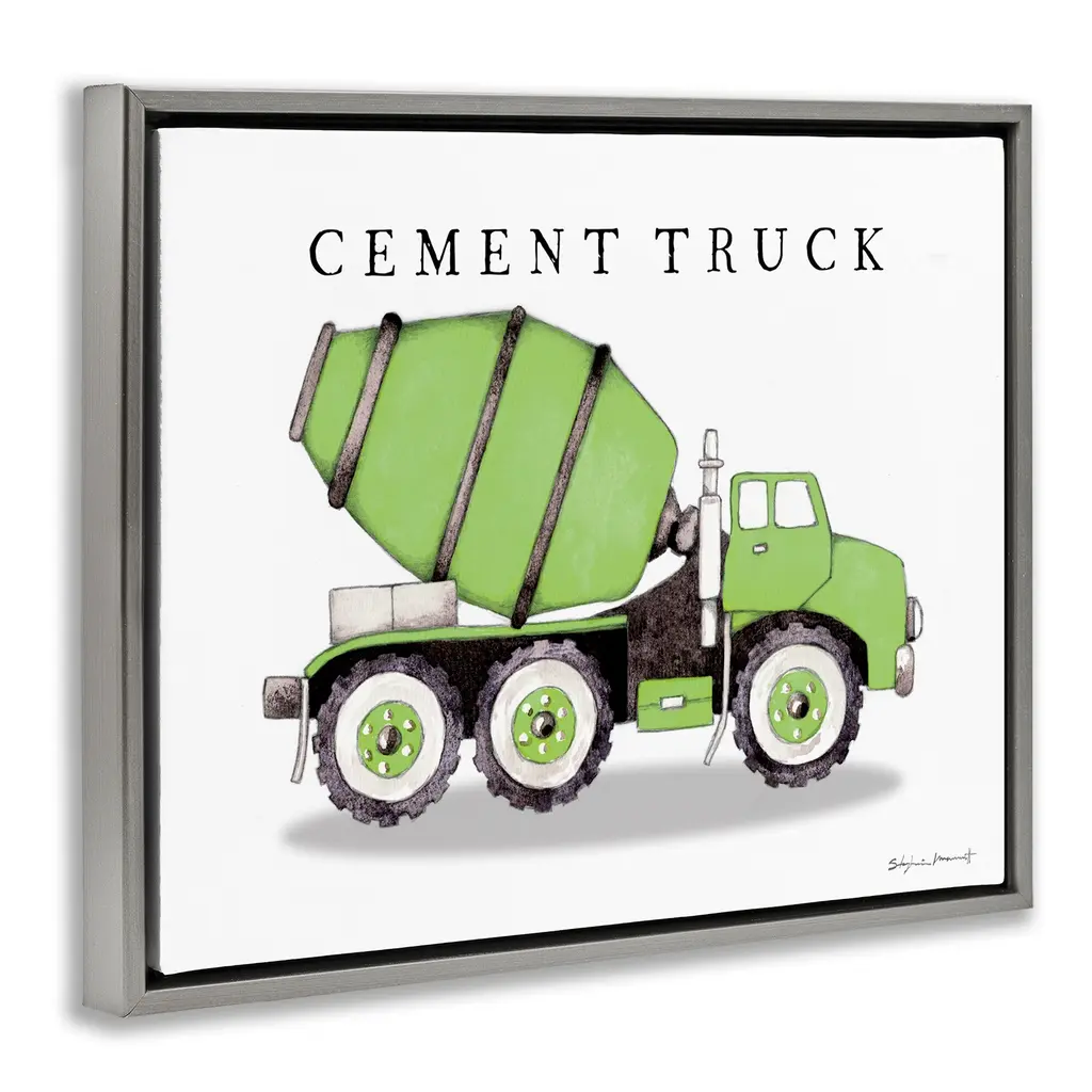 Stupell Green Cement Truck Construction Framed Floater Canvas Wall Art Design By Stephanie Workman Marrott - 21 X 17 - Grey
