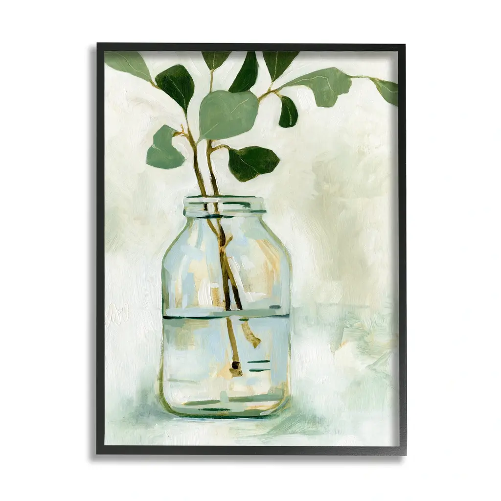Stupell Green Eucalyptus Branch Glass Jar Contemporary Still Life Framed Wall Art - 24 X 30 - Grey