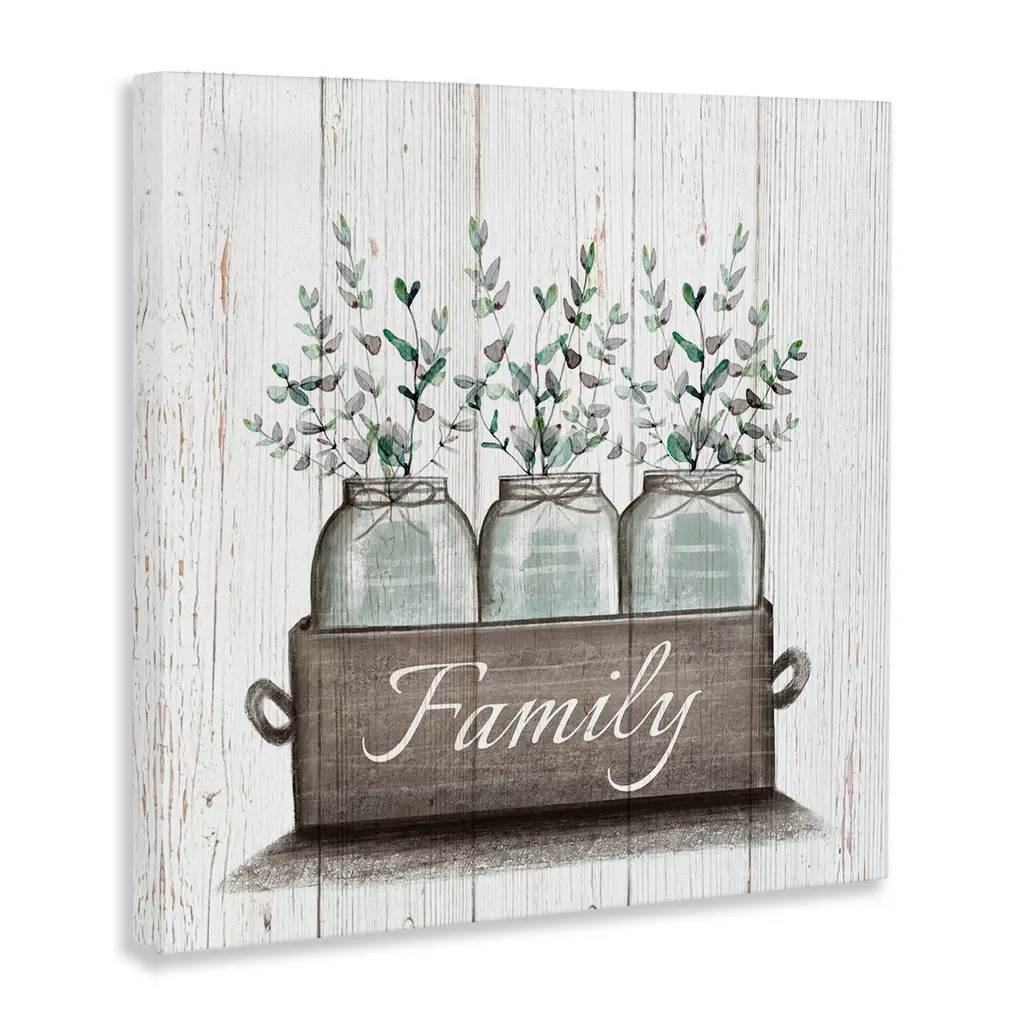Stupell Green Eucalyptus Foliage Jars With Family Sentiments Canvas Wall Art - Brown - 24 X 24