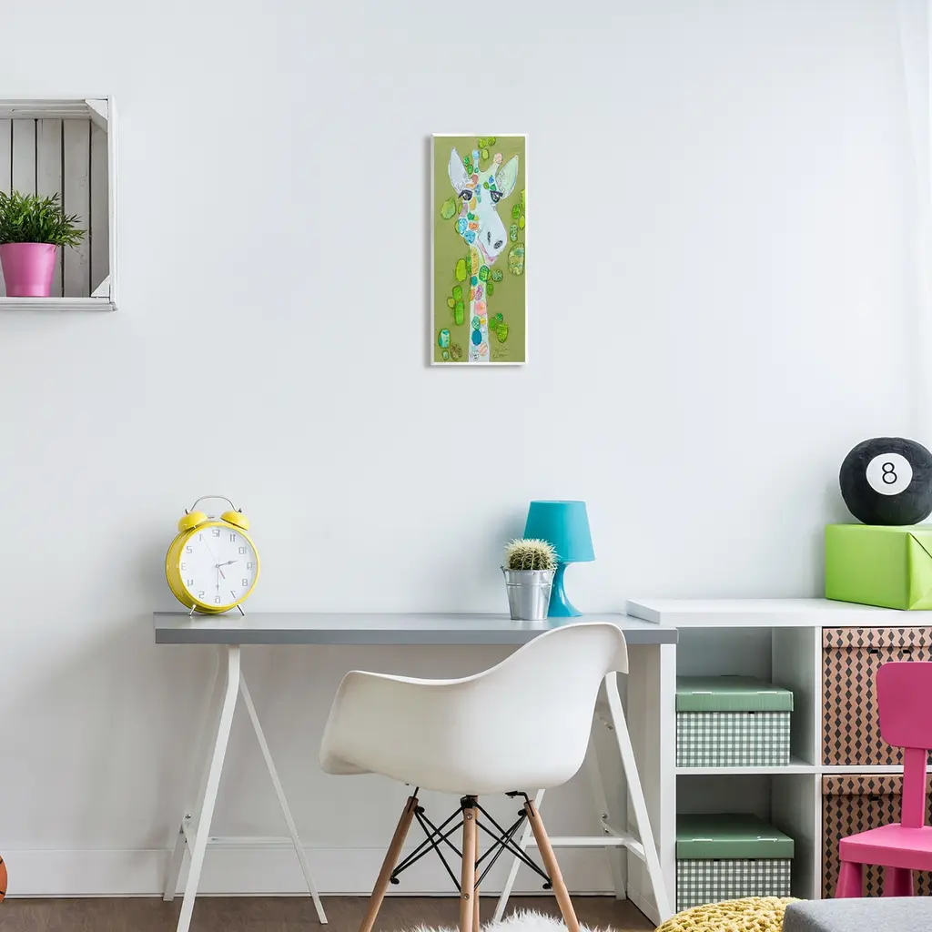 Our wall plaques start as high-quality lithograph prints mounted on durable 0.5-inch thick MDF wood. Each piece is hand finished and comes with a fresh layer of white foil on the sides to give it a crisp, clean look. Plaques arrive ready to hang without installation and come with removable plastic corners to keep them from damage in transit. Stupell Industries Wall Art is made in the USA.Features: Dimensions: 7 x 0.5 x 17 InchesWall Art is Ready to Hang with Hardware Free Hanging. No installation required. For Easy Set Up Lean or Layer Artwork on Shelf or Against Wall.All of our wall plaques start off as high quality lithograph prints that are then mounted on durable 0.5 inch thick MDF wood. Each piece is hand finished and comes with a fresh layer of foil on the sides to give it a crisp clean look. Made In USA.Artwork Relates To: Pattern, Painting, Collage, Animal, Giraffe, Mammal, Wildlife, Green, AbstractDesign by Elizabeth St. Hilaire