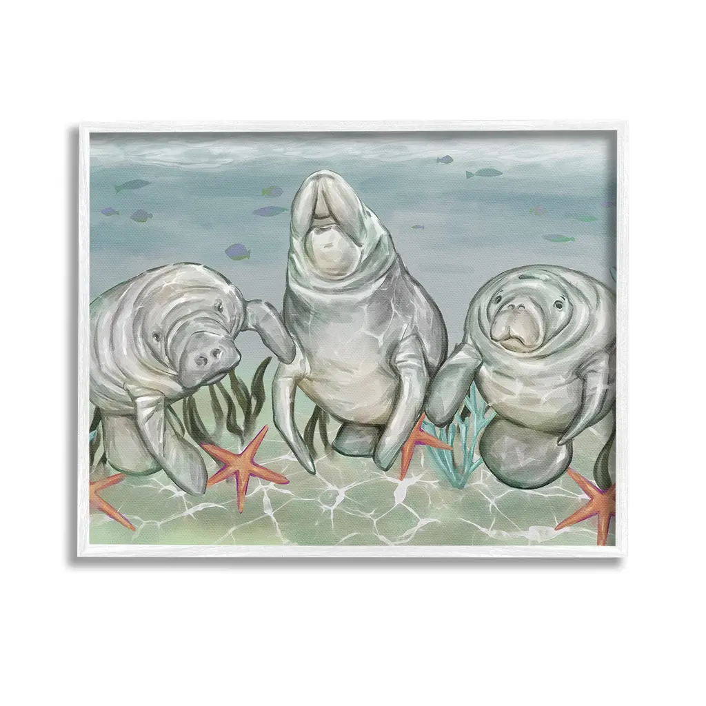We create our stretched canvas to the highest standards. Using only the highest quality inks and canvas on Mimaki printers, we hand-cut and stretch each piece over a 1.5-inch thick wooden frame for hanging. As a result, the art comes ready to hang on the sturdy ledge with no installation required. Stupell Wall Art is made in the USA.Features: Dimensions: 16 x 1.5 x 20 InchesStretched Canvas Sizes Include Standard: 16 x 1.5 x 20 Large: 20 x 1.5 x 30 X-Large: 30 x 1.5 x 40 Oversized: 36 x 1.5 x 48Wall Art is Ready to Hang with Hardware Free Hanging. No installation required. For Easy Set Up Lean or Layer Artwork on Shelf or Against Wall.Our stretched canvas is created with the highest standards. We use only the highest quality inks and canvas on our in house Mimaki printers, and then hand cut and stretch each piece over a 1.5 inch thick wooden frame for hanging. Made In USA.Artwork Relates To: Animal, Mammal, Wildlife, Manatee, Marine, Aquatic, UnderwaterDesign by Steve Vanderbosch