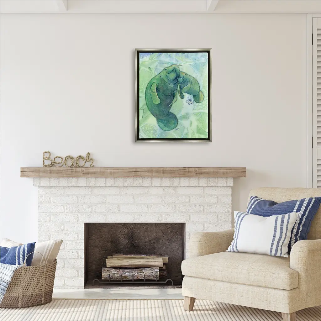 Elevate your home or office to the next level with Stupell Framed Floating Canvas Wall Art. Our premium hand-stretched canvas is mounted securely into a sturdy lightweight frame. The museum-style gap between the wrapped canvas and the box frame gives the illusion of floating artwork. Stupell Wall Art is made in the USA.Features: Dimensions: 17 x 1.7 x 21 Frame, 16 x 1.5 x 20 Canvas ArtFloating Frame Sizes Include Standard: 17 x 1.7 x 21 Oversized: 25 x 1.7 x 31Wall Art is Ready to Hang with Hardware Free Hanging. No installation required. For Easy Set Up Lean or Layer Artwork on Shelf or Against Wall.Our elevated 1.7" Thick Floating Frame is the perfect complement to our canvas style Wall Art. We use only the highest quality inks in house with industry leading printing solutions. Canvas is hand stretched over a durable wood foundation and then mounted securly into a Modern Box Frame. Made in the USA.Artwork Relates To: Animal, Mammal, Wildlife, Manatee, Marine, Aquatic, UnderwaterDesign by Steve Vanderbosch