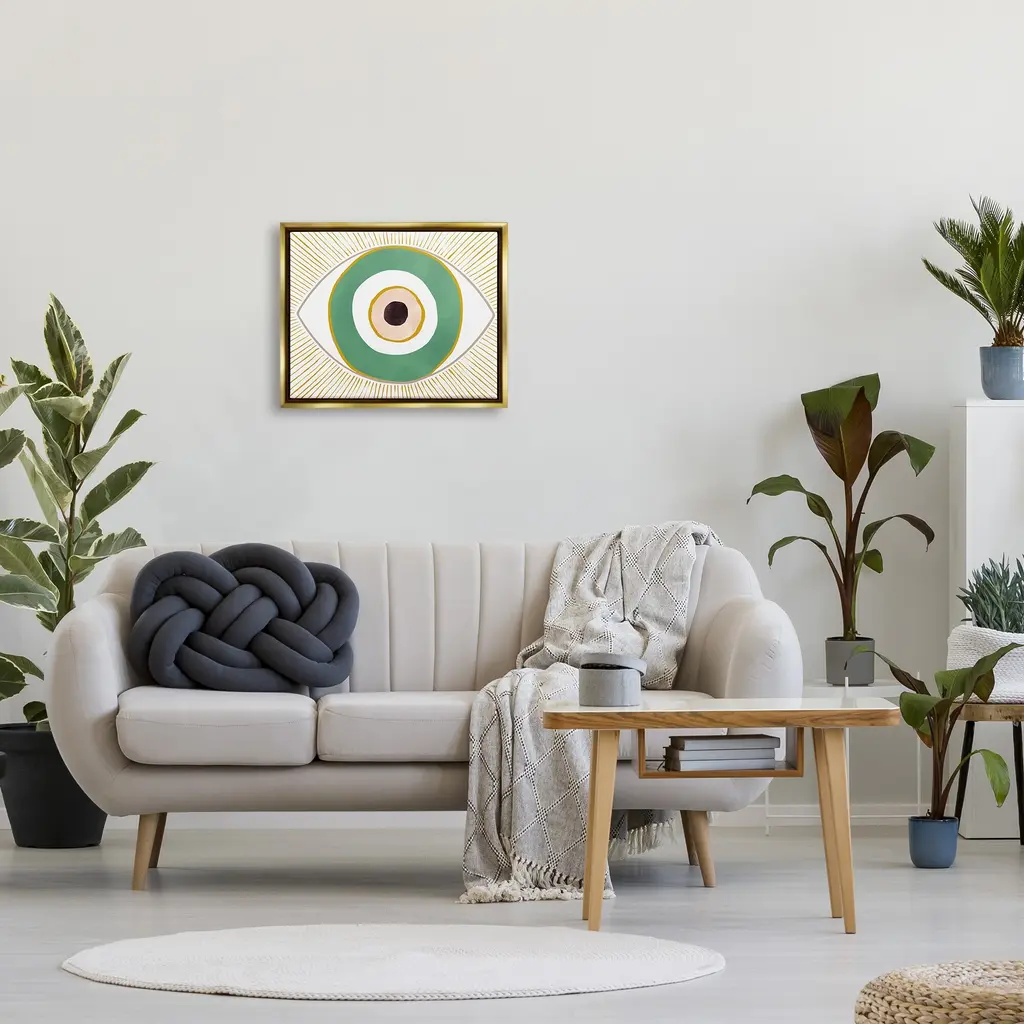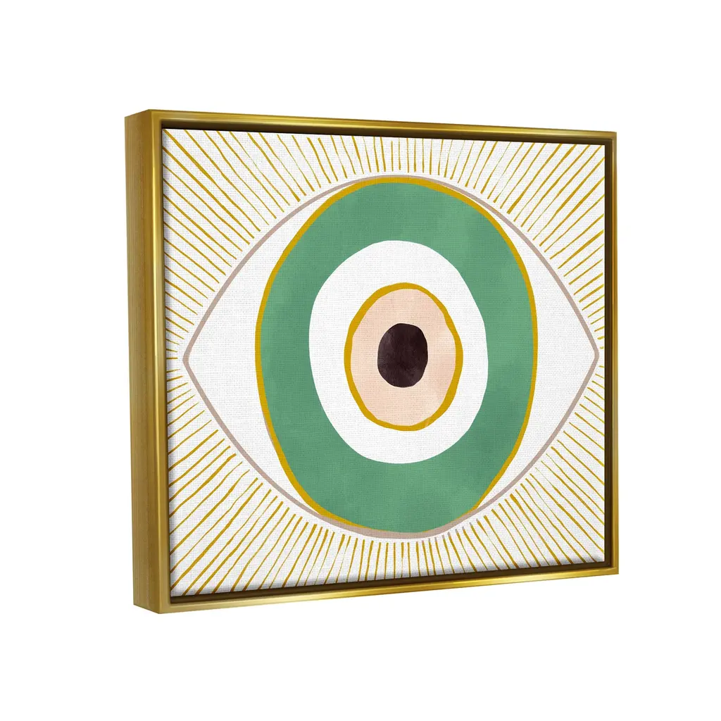 Stupell Green Modern Evil Eye Symbol Framed Floater Canvas Wall Art By Ziwei Li - 20 X 16 - Gold