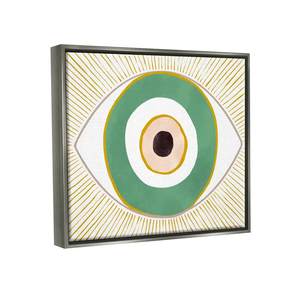 Stupell Green Modern Evil Eye Symbol Framed Floater Canvas Wall Art By Ziwei Li - 20 X 16 - Grey