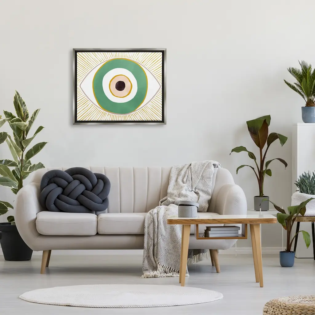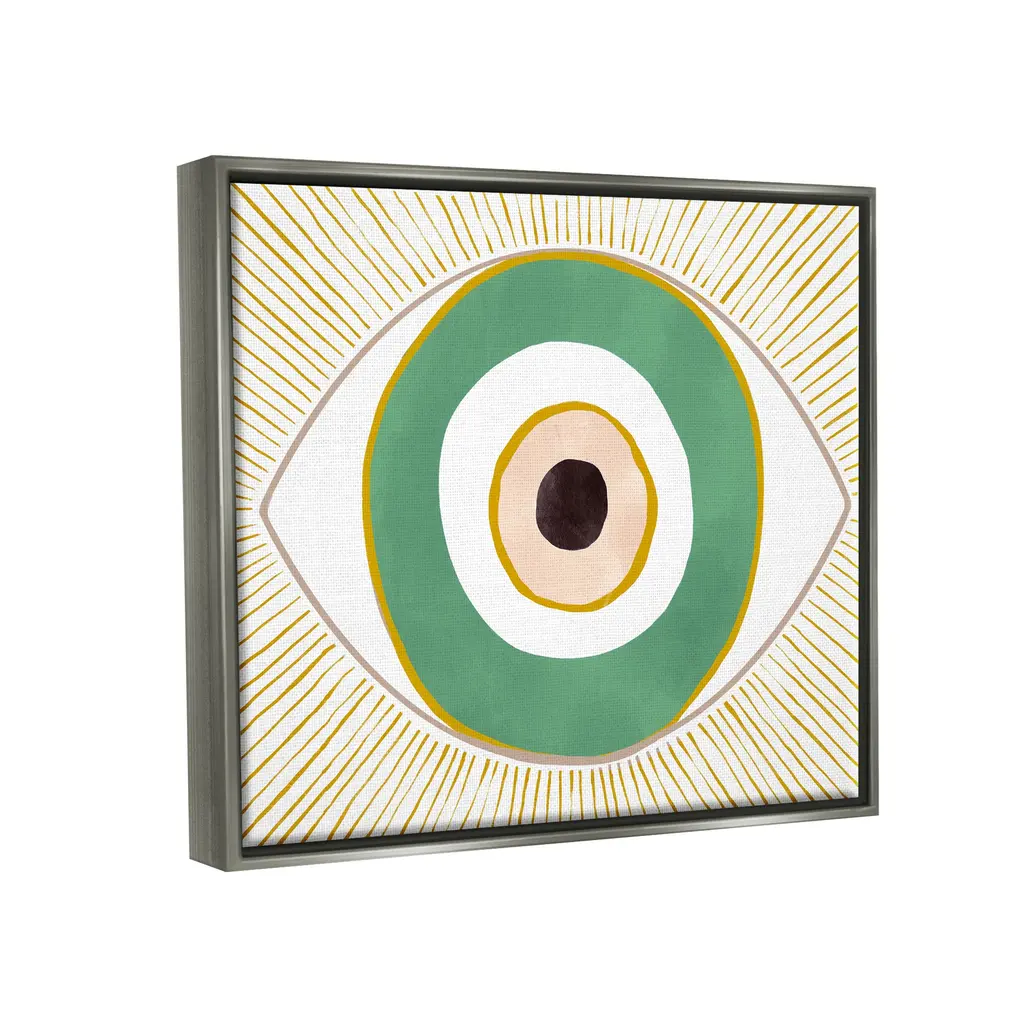 Stupell Green Modern Evil Eye Symbol Framed Floater Canvas Wall Art By Ziwei Li - 30 X 24 - Grey