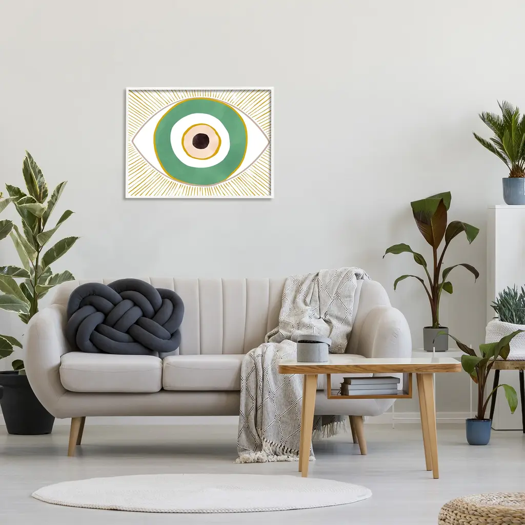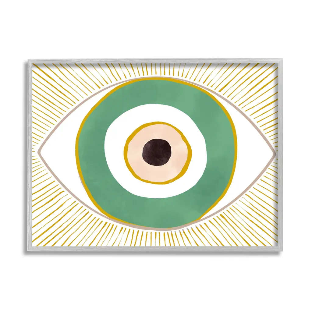 Stupell Green Modern Evil Eye Symbol Framed Giclee Art By Ziwei Li - 30 X 24 - White