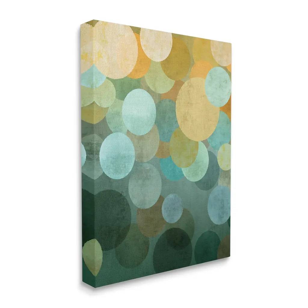 We create our stretched canvas to the highest standards. Using only the highest quality inks and canvas on Mimaki printers, we hand-cut and stretch each piece over a 1.5-inch thick wooden frame for hanging. As a result, the art comes ready to hang on the sturdy ledge with no installation required. Stupell Wall Art is made in the USA.Features: Dimensions: 16 x 1.5 x 20 InchesStretched Canvas Sizes Include Standard: 16 x 1.5 x 20 Large: 20 x 1.5 x 30 X-Large: 30 x 1.5 x 40 Oversized: 36 x 1.5 x 48Wall Art is Ready to Hang with Hardware Free Hanging. No installation required. For Easy Set Up Lean or Layer Artwork on Shelf or Against Wall.Our stretched canvas is created with the highest standards. We use only the highest quality inks and canvas on our in house Mimaki printers, and then hand cut and stretch each piece over a 1.5 inch thick wooden frame for hanging. Made In USA.Artwork Relates To: Contemporary, Modern, Abstract, Geometric, CirclesDesign by Brent Nelson
