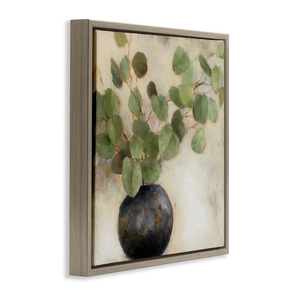 Elevate your home or office to the next level with Stupell Framed Floating Canvas Wall Art. Our premium hand-stretched canvas is mounted securely into a sturdy lightweight frame. The museum-style gap between the wrapped canvas and the box frame gives the illusion of floating artwork. Stupell Wall Art is made in the USA.Features: Dimensions: 18 x 1.7 x 18 Frame, 17 x 1.5 x 17 Canvas ArtFloating Frame Canvas Products are available in sizes 18"x18" and 25"x25". All Floating Frame Canvas Products have a 1.7" Depth.Wall Art is Ready to Hang with Hardware Free Hanging. No Installation required. For Easy Set Up Lean or Layer Artwork on Shelf or Against Wall. Artwork is Permently Fixed into the Frame.Our elevated 1.7" Thick Floating Frame is the perfect complement to our canvas style Wall Art. We use only the highest quality inks in house with industry leading printing solutions. Canvas is hand stretched over a durable wood foundation and then mounted securly into a Modern Box Frame. Made in the USA.Artwork Relates To: Plant, Plant, Eucalyptus, Botanical, VaseDesign by Lanie Loreth