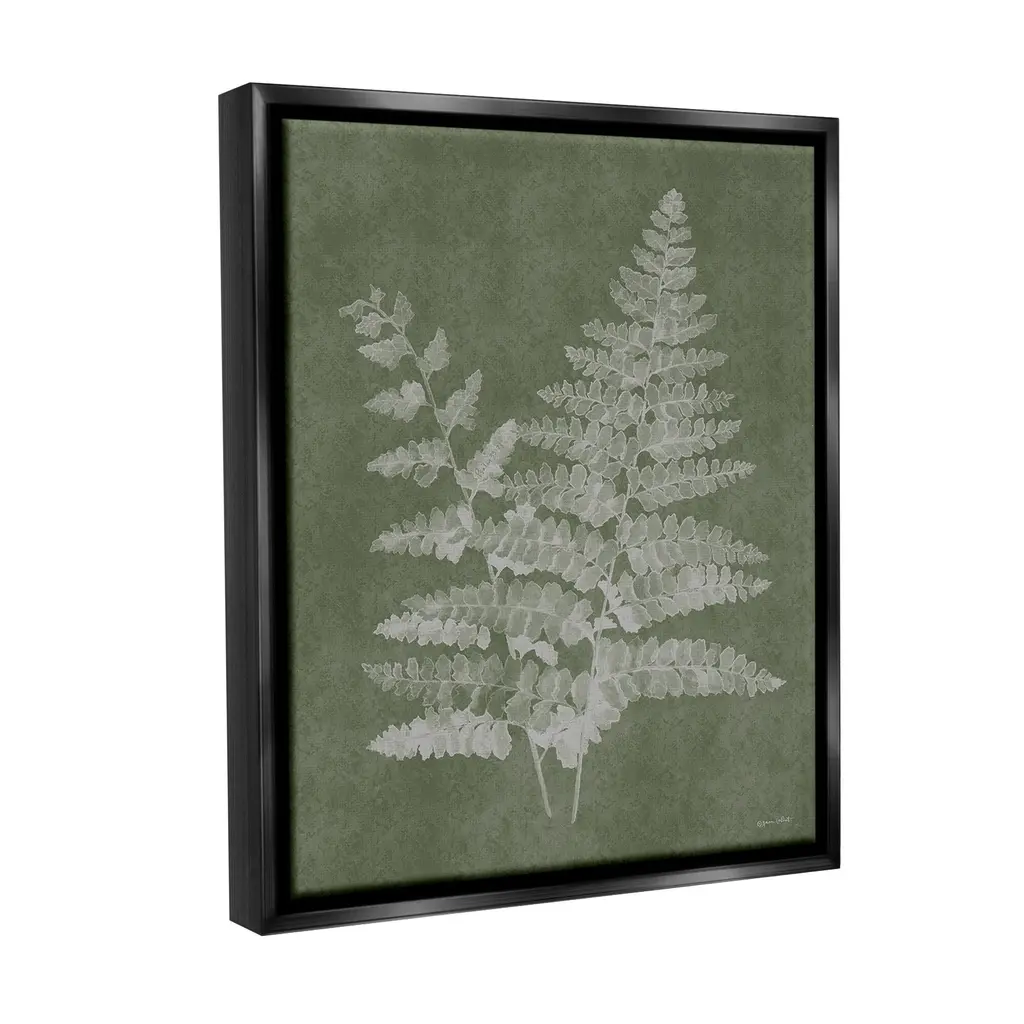 Elevate your home or office to the next level with Stupell Framed Floating Canvas Wall Art. Our premium hand-stretched canvas is mounted securely into a sturdy lightweight frame. The museum-style gap between the wrapped canvas and the box frame gives the illusion of floating artwork. Stupell Wall Art is made in the USA.Features: Dimensions: 17 x 1.7 x 21 Frame, 16 x 1.5 x 20 Canvas ArtFloating Frame Canvas Products are available in sizes 17"x21" and 25"x31". All Floating Frame Canvas Products have a 1.7" Depth.Wall Art is Ready to Hang with Hardware Free Hanging. No Installation required. For Easy Set Up Lean or Layer Artwork on Shelf or Against Wall. Artwork is Permently Fixed into the Frame.Our elevated 1.7" Thick Floating Frame is the perfect complement to our canvas style Wall Art. We use only the highest quality inks in house with industry leading printing solutions. Canvas is hand stretched over a durable wood foundation and then mounted securly into a Modern Box Frame. Made in the USA.Artwork Relates To: Leaf, Plant, Fern, Woodland, Botanical, Abstract, Modern, RusticDesign by Annie LaPoint