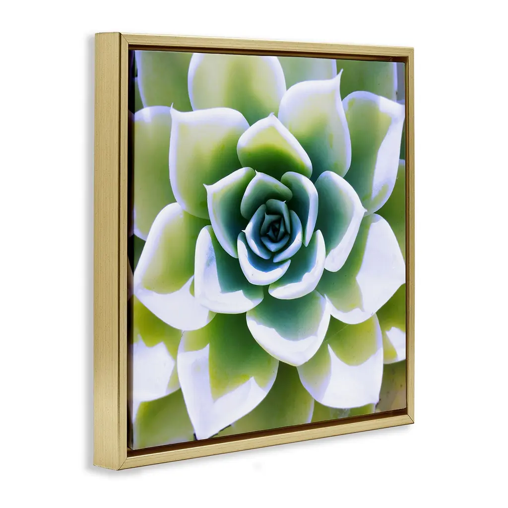 Elevate your home or office to the next level with Stupell Framed Floating Canvas Wall Art. Our premium hand-stretched canvas is mounted securely into a sturdy lightweight frame. The museum-style gap between the wrapped canvas and the box frame gives the illusion of floating artwork. Stupell Wall Art is made in the USA.Features: Dimensions: 18 x 1.7 x 18 Frame, 17 x 1.5 x 17 Canvas ArtFloating Frame Canvas Products are available in sizes 18"x18" and 25"x25". All Floating Frame Canvas Products have a 1.7" Depth.Wall Art is Ready to Hang with Hardware Free Hanging. No Installation required. For Easy Set Up Lean or Layer Artwork on Shelf or Against Wall. Artwork is Permently Fixed into the Frame.Our elevated 1.7" Thick Floating Frame is the perfect complement to our canvas style Wall Art. We use only the highest quality inks in house with industry leading printing solutions. Canvas is hand stretched over a durable wood foundation and then mounted securly into a Modern Box Frame. Made in the USA.Artwork Relates To: Plant, Botanical, Floral, Close Up, Modern, SucculentDesign by Irena Orlov