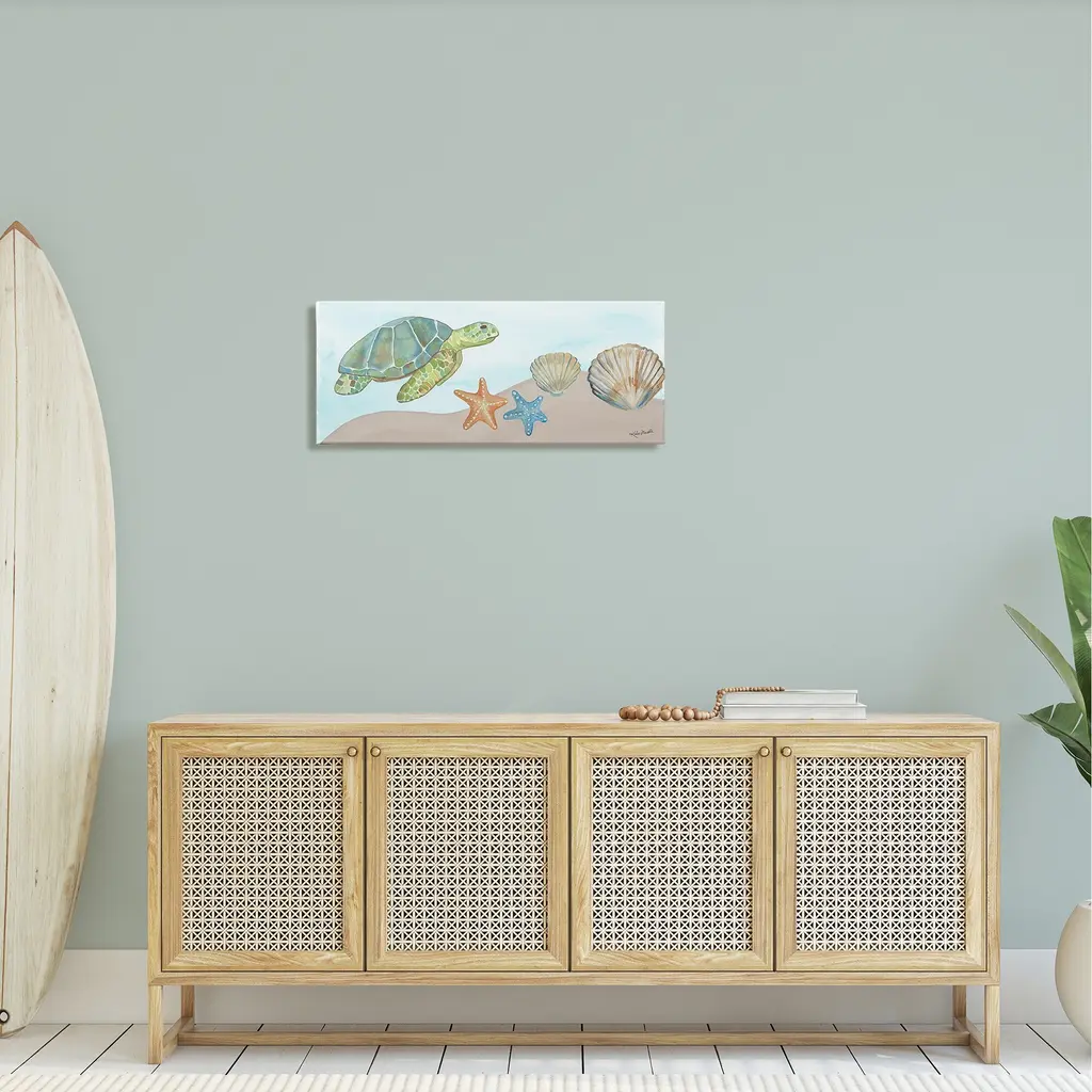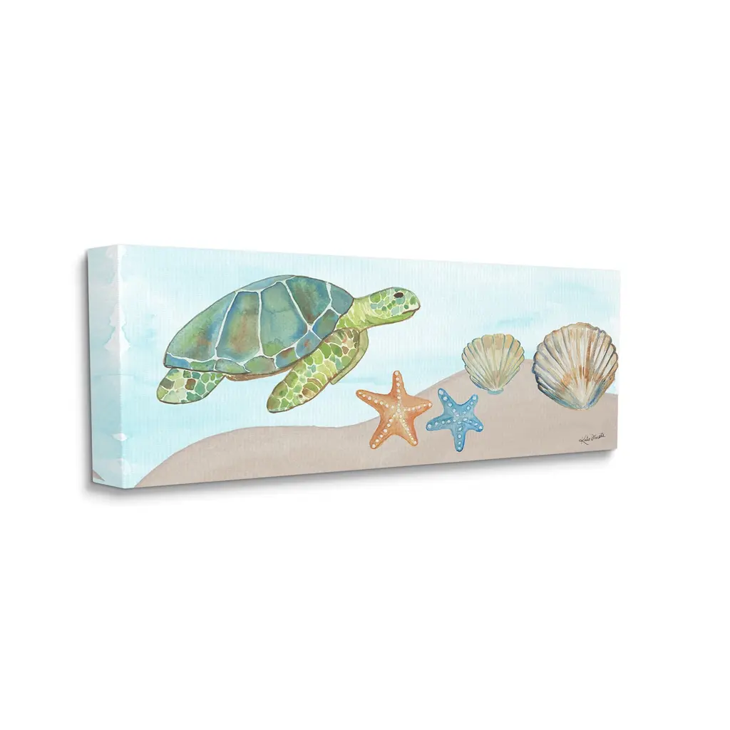 Stupell Green Turtle Swimming Starfish Shells Sea Life Canvas Wall Art, Design By Katie Doucette - 30 X 13