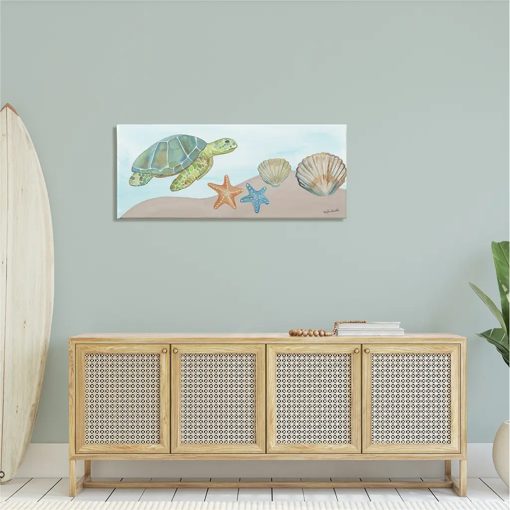 Stupell Green Turtle Swimming Starfish Shells Sea Life Canvas Wall Art, Design By Katie Doucette - 48 X 20