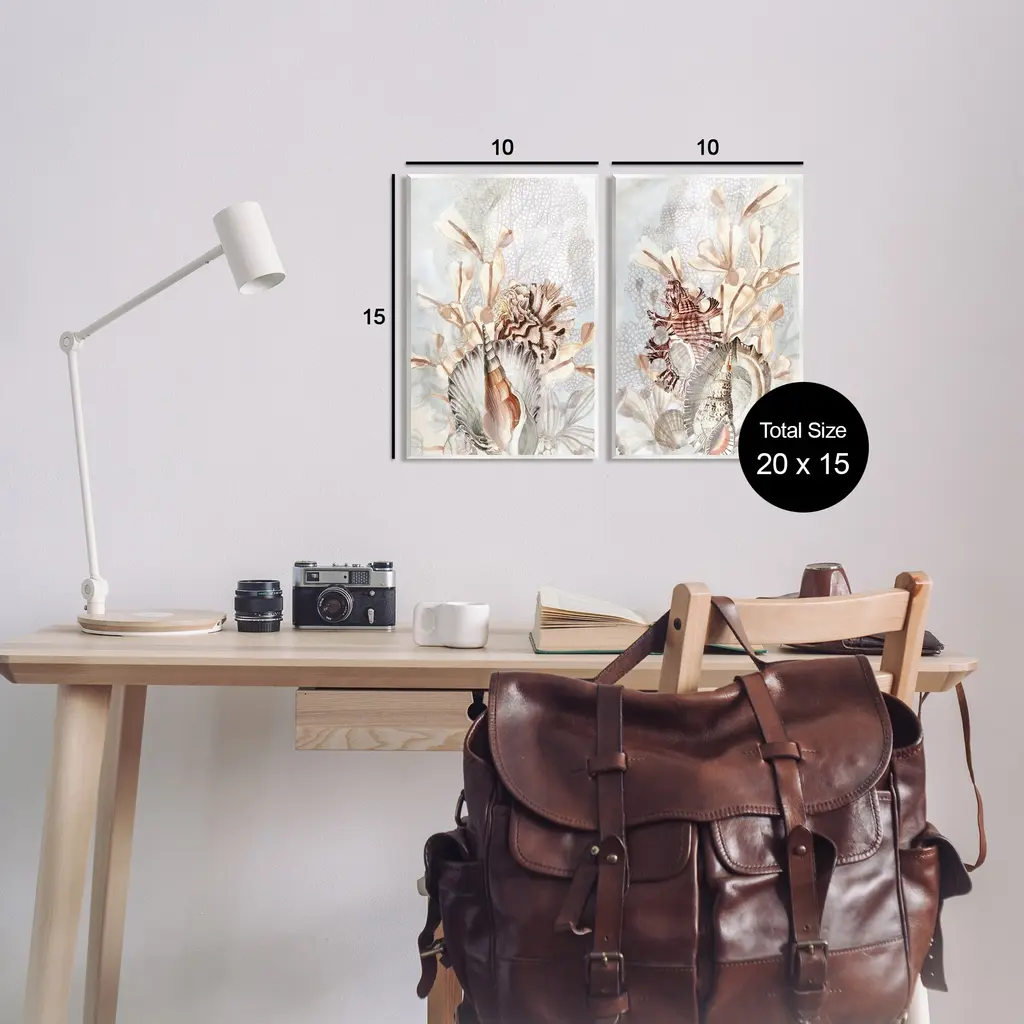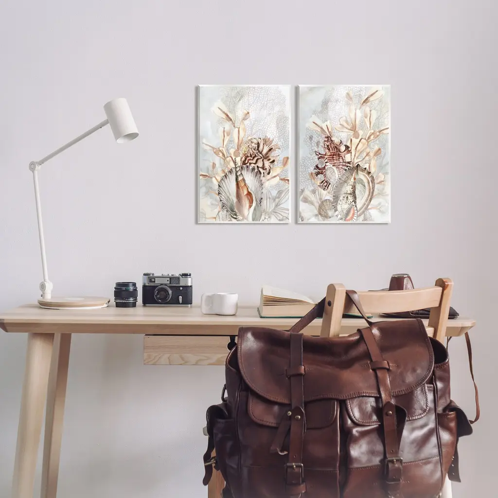 Fill any space with Stupell Wall Art Sets. Our wall plaques start as high-quality lithograph prints mounted on durable 0.5-inch thick MDF wood. Each piece is hand finished and comes with a fresh layer of white foil on the sides to give it a crisp, clean look. Plaques arrive ready to hang without installation and come with removable plastic corners to keep them from damage in transit. Stupell Industries Wall Art is made in the USA.Features: Dimensions: 2 Piece Set, Each Panel is 10 x 0.5 x 15 InchesWall Plaque Set Sizes Include Standard: 2pc, Each is 10 x 0.5 x 15 Oversized: 2pc, Each is 13 x 0.5 x 19Wall Art is Ready to Hang with Hardware Free Hanging. No installation required. For Easy Set Up Lean or Layer Artwork on Shelf or Against Wall.All of our wall plaques start off as high quality lithograph prints that are then mounted on durable 0.5 inch thick MDF wood. Each piece is hand finished and comes with a fresh layer of foil on the sides to give it a crisp clean look. Made In USA.Artwork Relates To: Animal, Invertebrate, Sea Life, Seashell, Plant, CoralDesign by June Erica Vess
