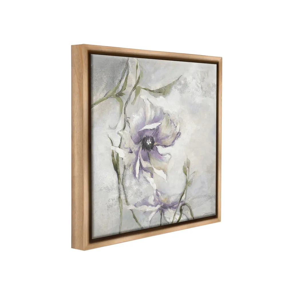 Stupell Grey & Purple Flower Framed Floater Canvas Wall Art Design By Liz Jardine - 18 X 18 - Brown