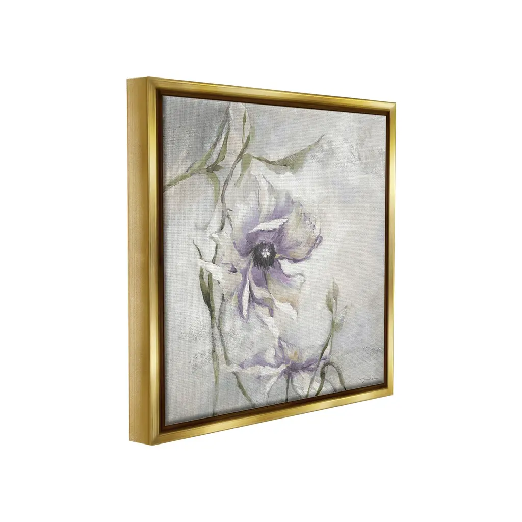 Stupell Grey & Purple Flower Framed Floater Canvas Wall Art Design By Liz Jardine - 25 X 25 - Gold