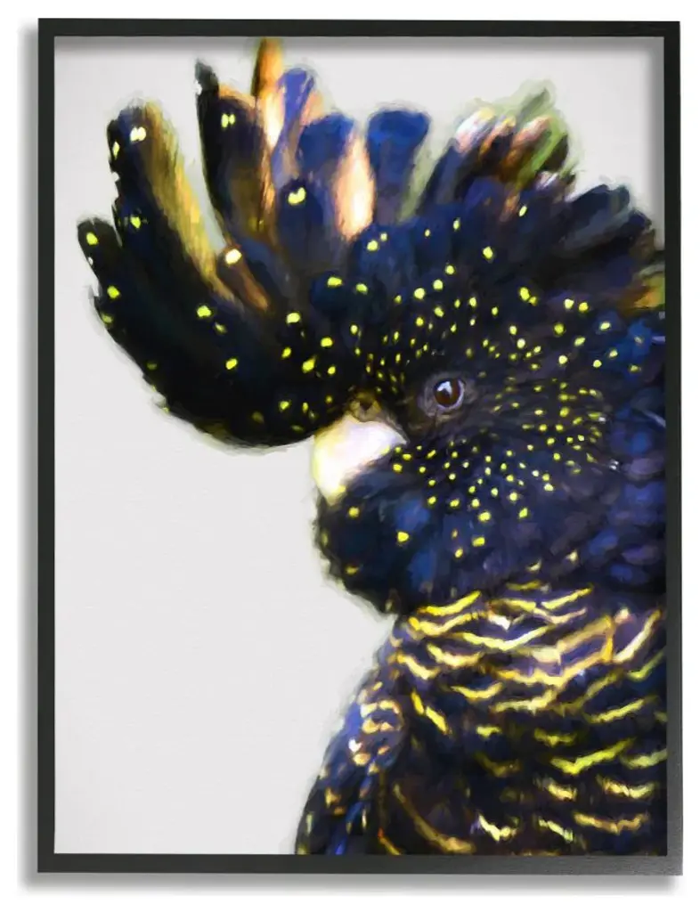Add dimension to any room with our textured Framed Giclee Artwork. Our framed artwork is securely mounted into a 1.5-inch thick wood grain frame and ready to hang. Frames are available in three alluring styles: black, gray farmhouse and white. In addition, you should check out our oversized options if you want a statement piece. Stupell Wall Art is made in the USA.Features: Dimensions: 11 x 1.5 x 14 FramedFramed Giclee Sizes Include Standard: 11 x 1.5 x 14 Large: 16 x 1.5 x 20 Oversized: 24 x 1.5 x 30Wall Art is Ready to Hang with Hardware Free Hanging. No installation required. For Easy Set Up Lean or Layer Artwork on Shelf or Against Wall.Our giclée prints are carefully mounted on a durable MDF backing, and then perfectly finished in a 1.5 inch thick woodgrain frame. Mounted frame colors include black, gray farmhouse and white. Made In USA.Artwork Relates To: Animal, Bird, Parrot, CockatooDesign by Sisi and Seb