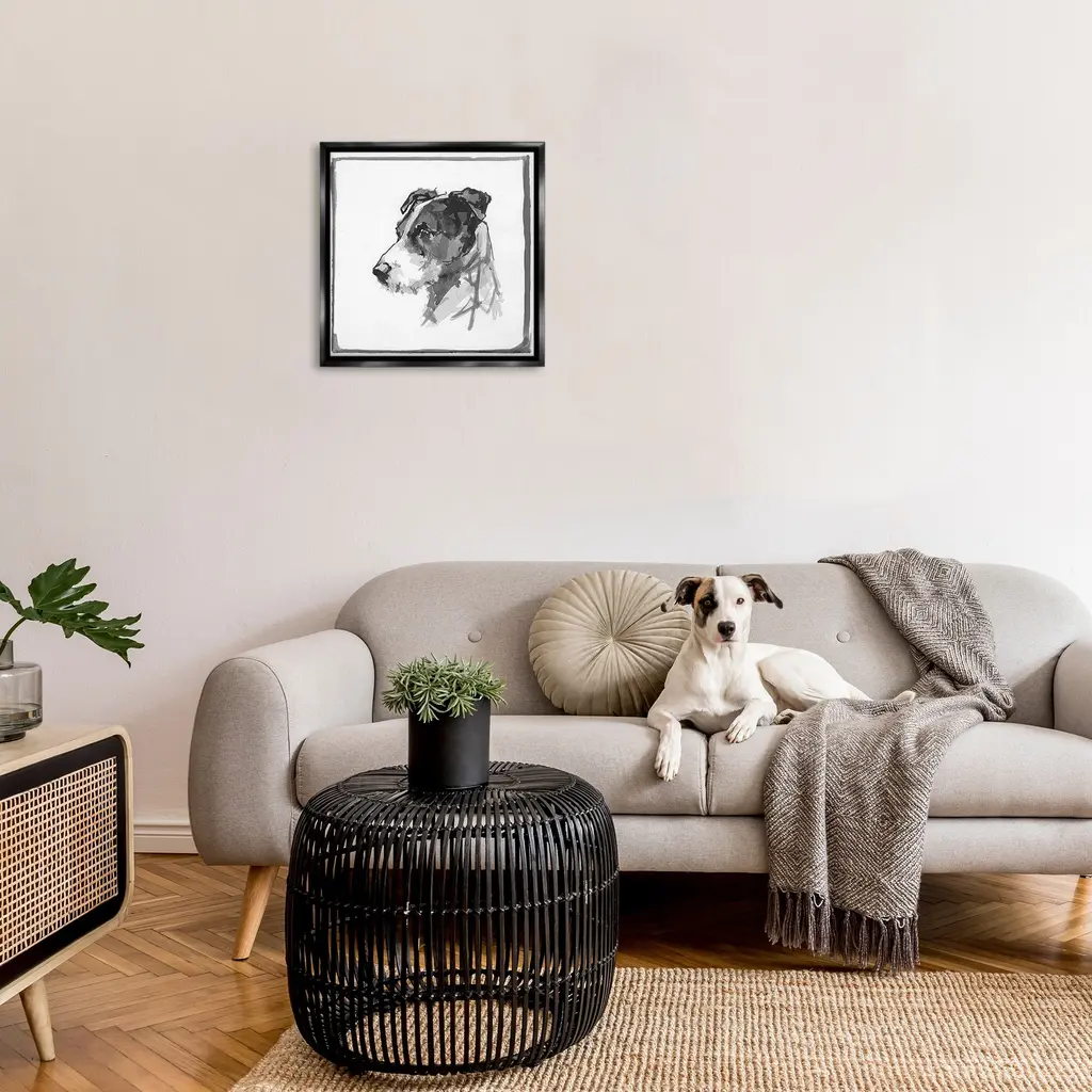 Elevate your home or office to the next level with Stupell Framed Floating Canvas Wall Art. Our premium hand-stretched canvas is mounted securely into a sturdy lightweight frame. The museum-style gap between the wrapped canvas and the box frame gives the illusion of floating artwork. Stupell Wall Art is made in the USA.Features: Dimensions: 18 x 1.7 x 18 Frame, 17 x 1.5 x 17 Canvas ArtFloating Frame Canvas Products are available in sizes 18"x18" and 25"x25". All Floating Frame Canvas Products have a 1.7" Depth.Wall Art is Ready to Hang with Hardware Free Hanging. No Installation required. For Easy Set Up Lean or Layer Artwork on Shelf or Against Wall. Artwork is Permently Fixed into the Frame.Our elevated 1.7" Thick Floating Frame is the perfect complement to our canvas style Wall Art. We use only the highest quality inks in house with industry leading printing solutions. Canvas is hand stretched over a durable wood foundation and then mounted securly into a Modern Box Frame. Made in the USA.Artwork Relates To: Animal, Canine, Dog, Mammal, Pet, Minimal, AbstractDesign by Cartissi