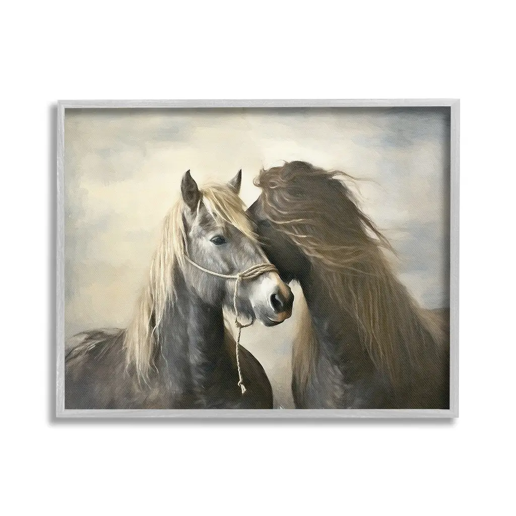 Stupell Grey Horse Hugs Framed Giclee Art Design By Ramona Murdock - 30 X 24 - Black