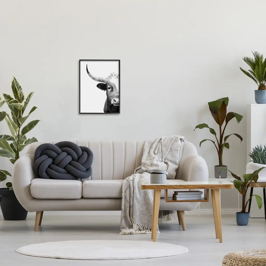 Add dimension to any room with our textured Framed Giclee Artwork. Our framed artwork is securely mounted into a 1.5-inch thick wood grain frame and ready to hang. Frames are available in three alluring styles: black, gray farmhouse and white. In addition, you should check out our oversized options if you want a statement piece. Stupell Wall Art is made in the USA.Features: Dimensions: 11 x 1.5 x 14 FramedFramed Giclee Sizes Include Standard: 11 x 1.5 x 14 Large: 16 x 1.5 x 20 Oversized: 24 x 1.5 x 30Wall Art is Ready to Hang with Hardware Free Hanging. No installation required. For Easy Set Up Lean or Layer Artwork on Shelf or Against Wall.Our giclée prints are carefully mounted on a durable MDF backing, and then perfectly finished in a 1.5 inch thick woodgrain frame. Mounted frame colors include black, gray farmhouse and white. Made In USA.Artwork Relates To: Animal, Bull, Mammal, Cattle, Longhorn, PortraitDesign by Sisi and Seb