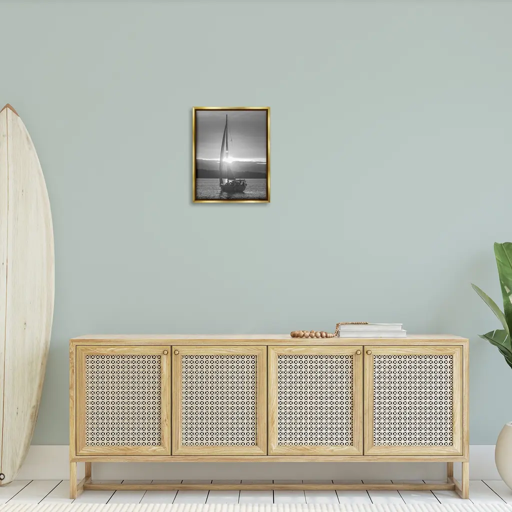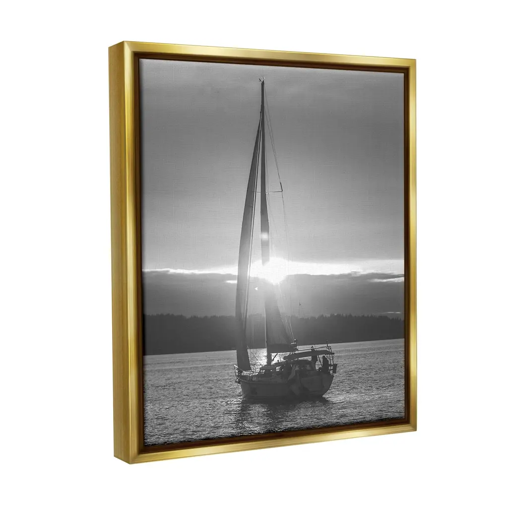 Elevate your home or office to the next level with Stupell Framed Floating Canvas Wall Art. Our premium hand-stretched canvas is mounted securely into a sturdy lightweight frame. The museum-style gap between the wrapped canvas and the box frame gives the illusion of floating artwork. Stupell Wall Art is made in the USA.Features: Dimensions: 17 x 1.7 x 21 Frame, 16 x 1.5 x 20 Canvas ArtFloating Frame Canvas Products are available in sizes 17"x21" and 25"x31". All Floating Frame Canvas Products have a 1.7" Depth.Wall Art is Ready to Hang with Hardware Free Hanging. No Installation required. For Easy Set Up Lean or Layer Artwork on Shelf or Against Wall. Artwork is Permently Fixed into the Frame.Our elevated 1.7" Thick Floating Frame is the perfect complement to our canvas style Wall Art. We use only the highest quality inks in house with industry leading printing solutions. Canvas is hand stretched over a durable wood foundation and then mounted securly into a Modern Box Frame. Made in the USA.Artwork Relates To: Boat, Sailboat, Transportation, Vehicle, Yacht, Horizon, Watercraft, Sunset, Sunrise, Monochrome, PhotographyDesign by Lil' Rue