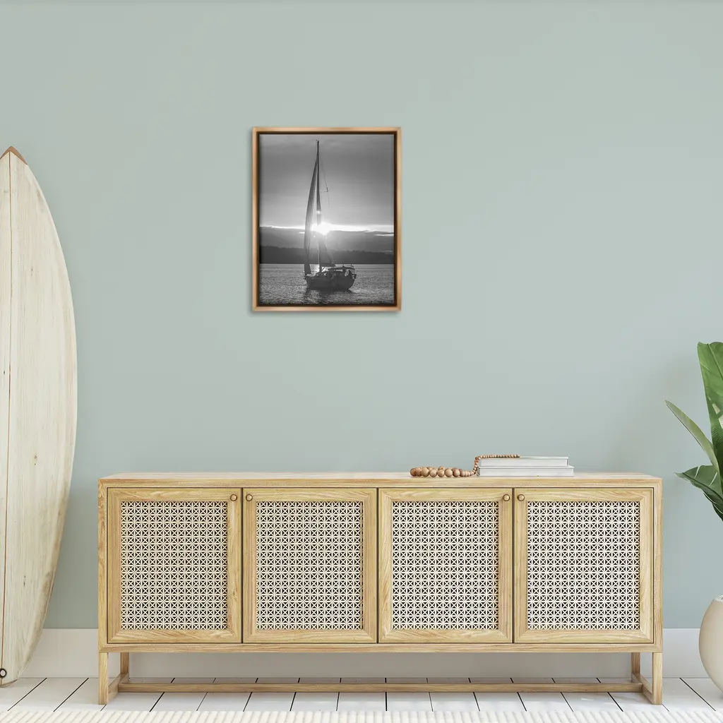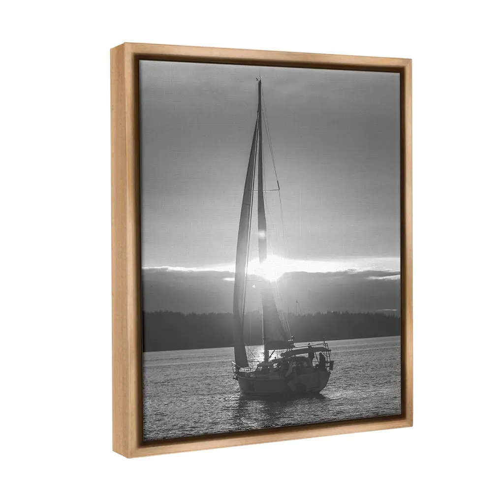 Elevate your home or office to the next level with Stupell Framed Floating Canvas Wall Art. Our premium hand-stretched canvas is mounted securely into a sturdy lightweight frame. The museum-style gap between the wrapped canvas and the box frame gives the illusion of floating artwork. Stupell Wall Art is made in the USA.Features: Dimensions: 17 x 1.7 x 21 Frame, 16 x 1.5 x 20 Canvas ArtFloating Frame Canvas Products are available in sizes 17"x21" and 25"x31". All Floating Frame Canvas Products have a 1.7" Depth.Wall Art is Ready to Hang with Hardware Free Hanging. No Installation required. For Easy Set Up Lean or Layer Artwork on Shelf or Against Wall. Artwork is Permently Fixed into the Frame.Our elevated 1.7" Thick Floating Frame is the perfect complement to our canvas style Wall Art. We use only the highest quality inks in house with industry leading printing solutions. Canvas is hand stretched over a durable wood foundation and then mounted securly into a Modern Box Frame. Made in the USA.Artwork Relates To: Boat, Sailboat, Transportation, Vehicle, Yacht, Horizon, Watercraft, Sunset, Sunrise, Monochrome, PhotographyDesign by Lil' Rue
