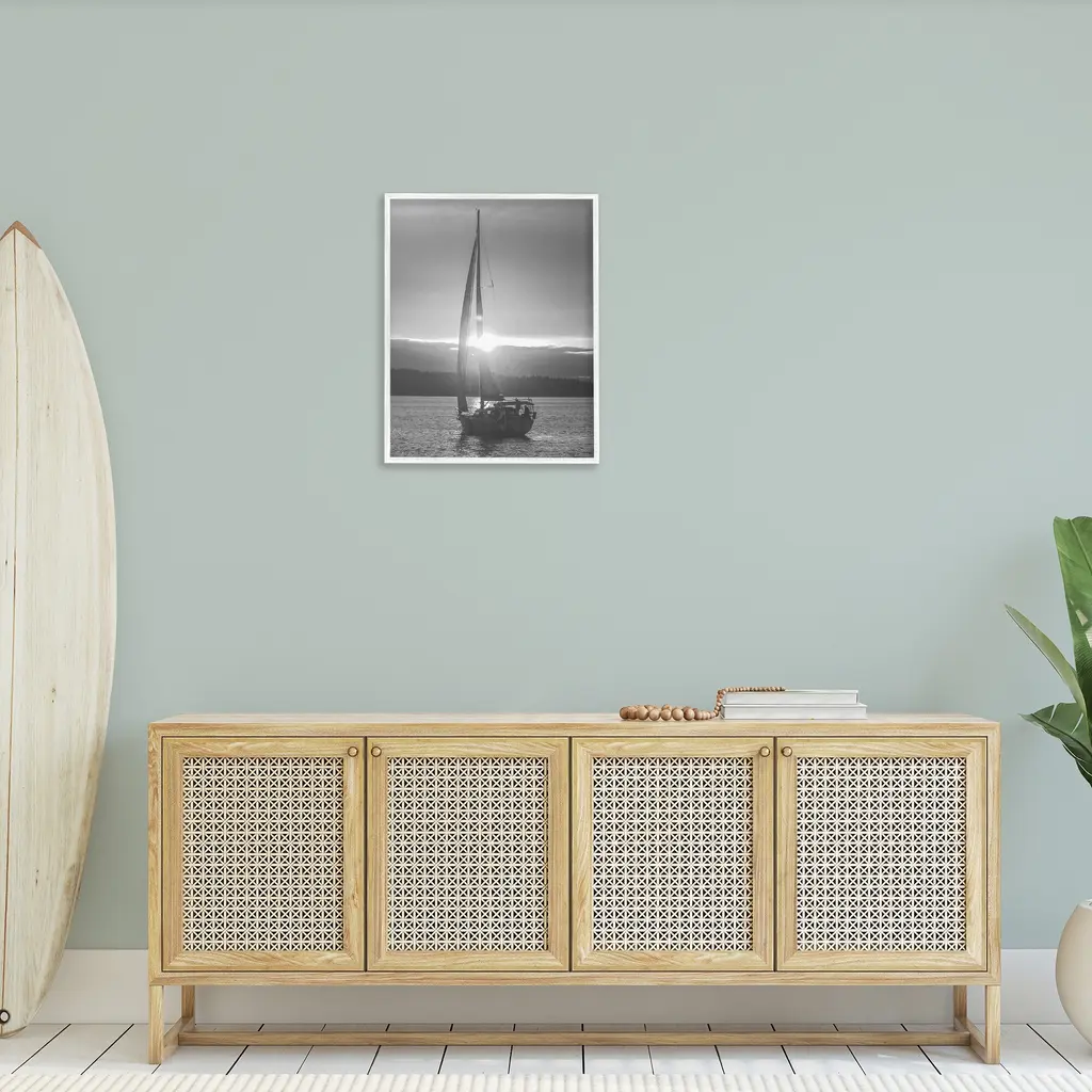 Add dimension to any room with our textured Framed Giclee Artwork. Our framed artwork is securely mounted into a 1.5-inch thick wood grain frame and ready to hang. Frames are available in three alluring styles: black, gray farmhouse and white. In addition, you should check out our oversized options if you want a statement piece. Stupell Wall Art is made in the USA.Features: Dimensions: 11 x 1.5 x 14 FramedFramed Giclee Products are available in the sizes 11"x14", 16"x20" or 24"x30". All Framed Giclee Products have a 1.5" Depth. Wall Art is Ready to Hang with Hardware Free Hanging. No installation required. For Easy Set Up Lean or Layer Artwork on Shelf or Against Wall.Our giclée prints are carefully mounted on a durable MDF backing, and then perfectly finished in a 1.5 inch thick woodgrain frame. Mounted frame colors include black, gray farmhouse and white. Made In USA.Artwork Relates To: Boat, Sailboat, Transportation, Vehicle, Yacht, Horizon, Watercraft, Sunset, Sunrise, Monochrome, PhotographyDesign by Lil' Rue