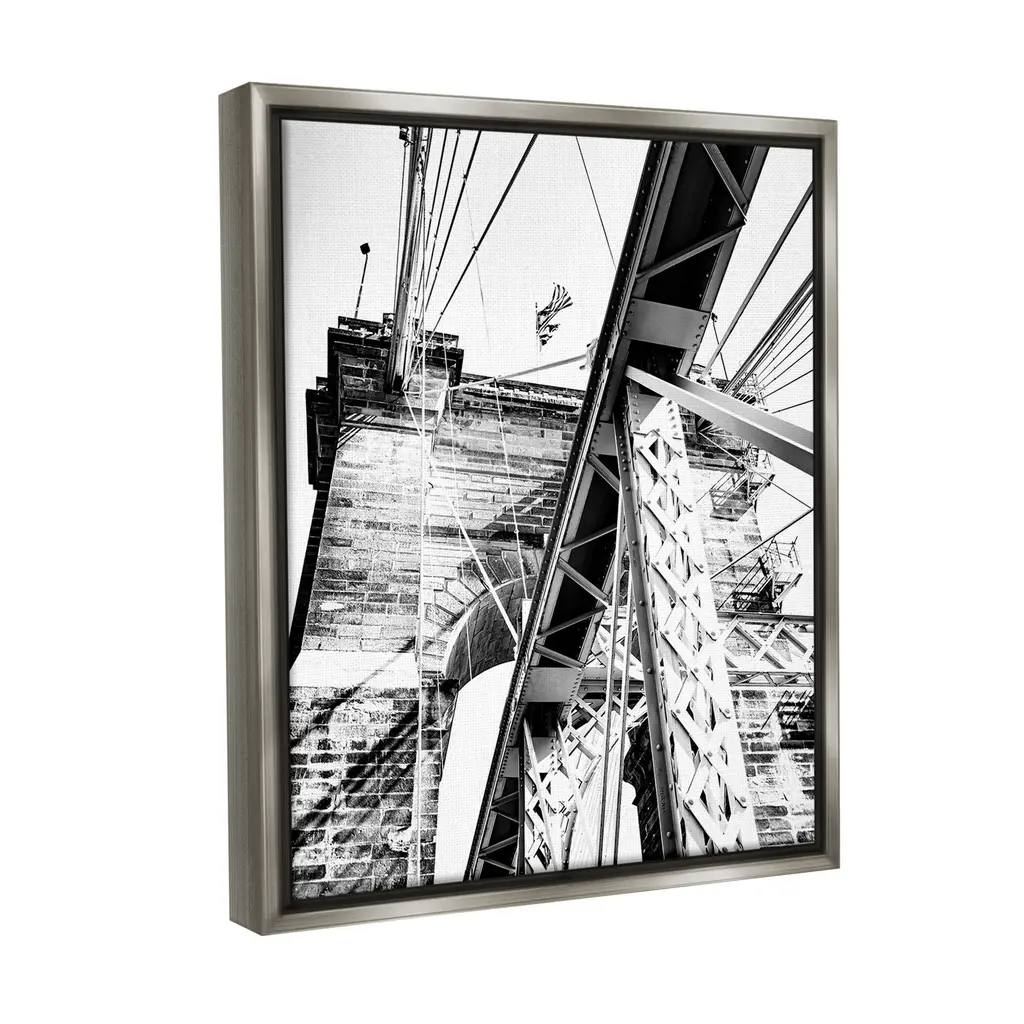 Elevate your home or office to the next level with Stupell Framed Floating Canvas Wall Art. Our premium hand-stretched canvas is mounted securely into a sturdy lightweight frame. The museum-style gap between the wrapped canvas and the box frame gives the illusion of floating artwork. Stupell Wall Art is made in the USA.Features: Dimensions: 17 x 1.7 x 21 Frame, 16 x 1.5 x 20 Canvas ArtFloating Frame Canvas Products are available in sizes 17"x21" and 25"x31". All Floating Frame Canvas Products have a 1.7" Depth.Wall Art is Ready to Hang with Hardware Free Hanging. No Installation required. For Easy Set Up Lean or Layer Artwork on Shelf or Against Wall. Artwork is Permently Fixed into the Frame.Our elevated 1.7" Thick Floating Frame is the perfect complement to our canvas style Wall Art. We use only the highest quality inks in house with industry leading printing solutions. Canvas is hand stretched over a durable wood foundation and then mounted securly into a Modern Box Frame. Made in the USA.Artwork Relates To: Bridge, Brooklyn Bridge, Landmark, Arch, Architecture, City, Urban, MonochromeDesign by Donnie Quillen