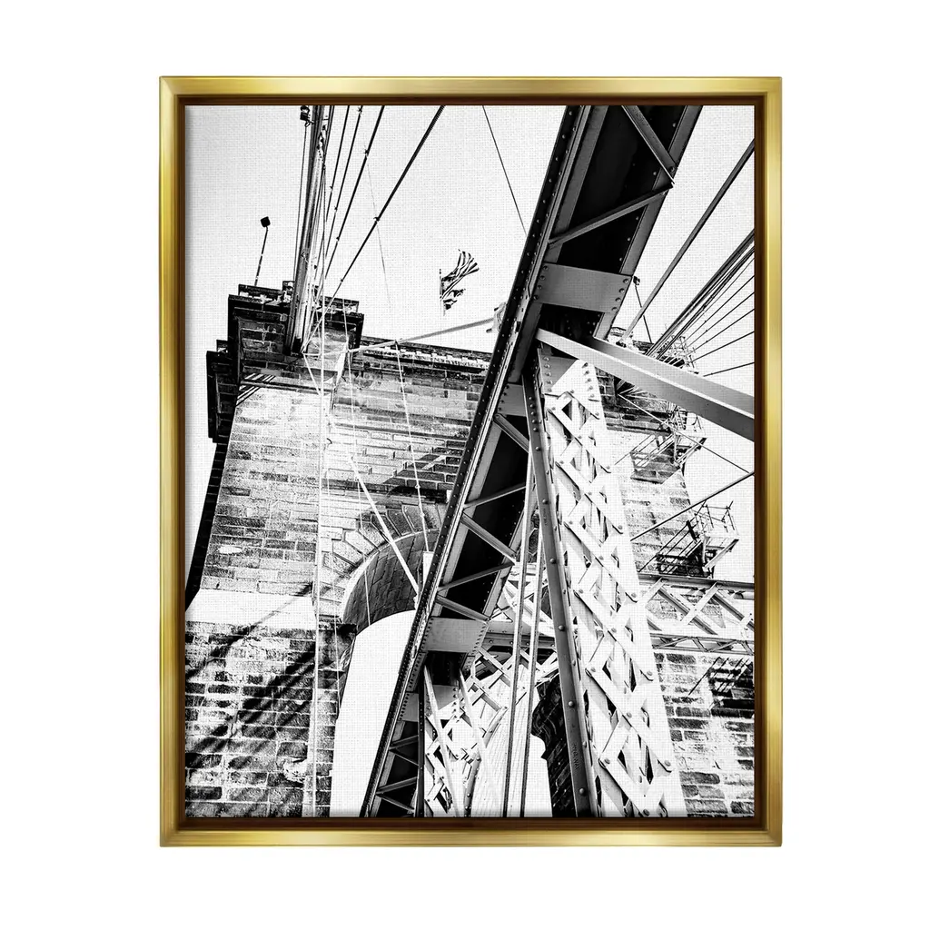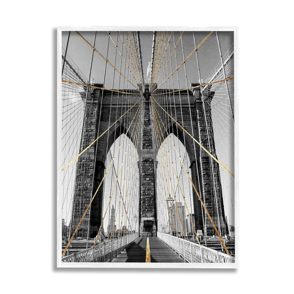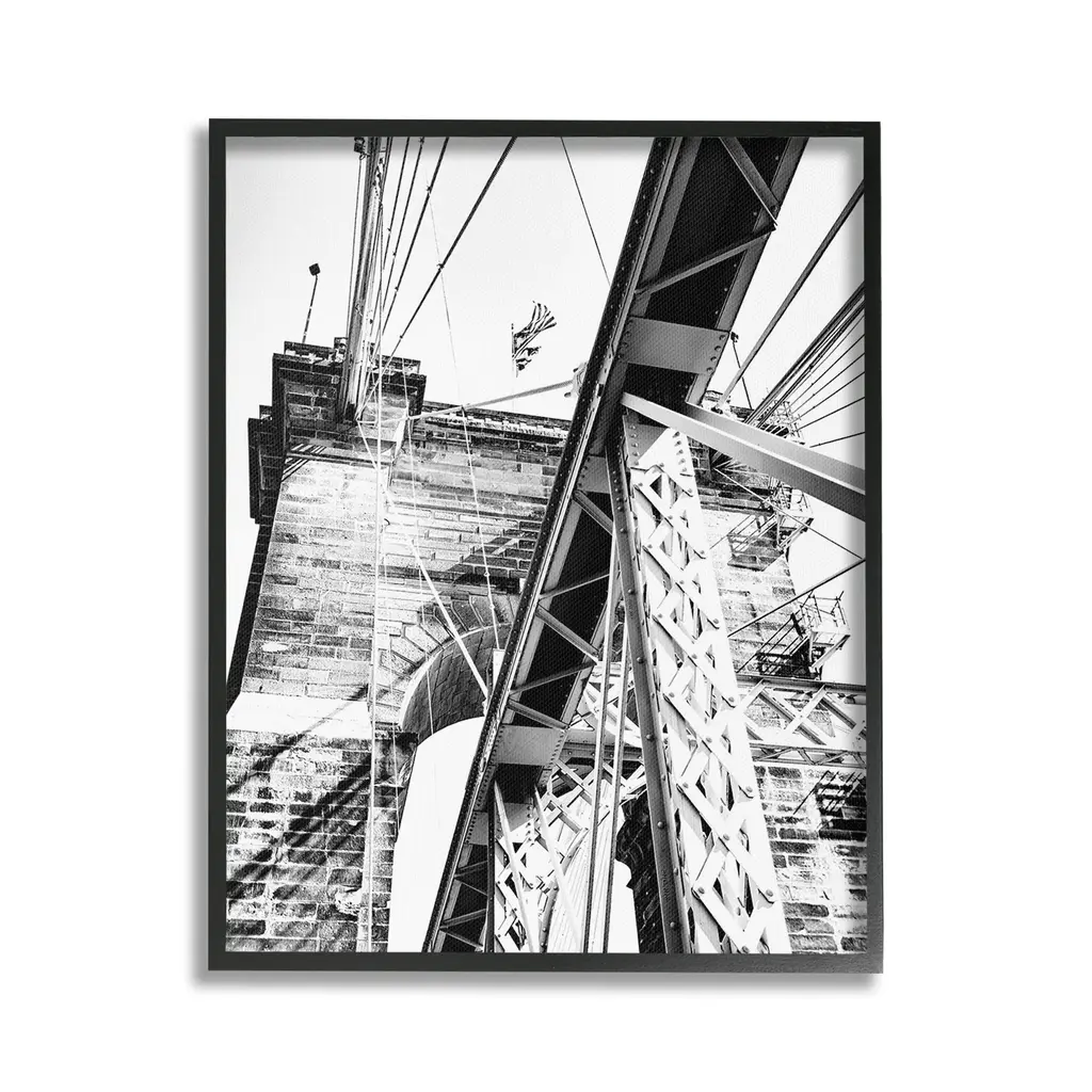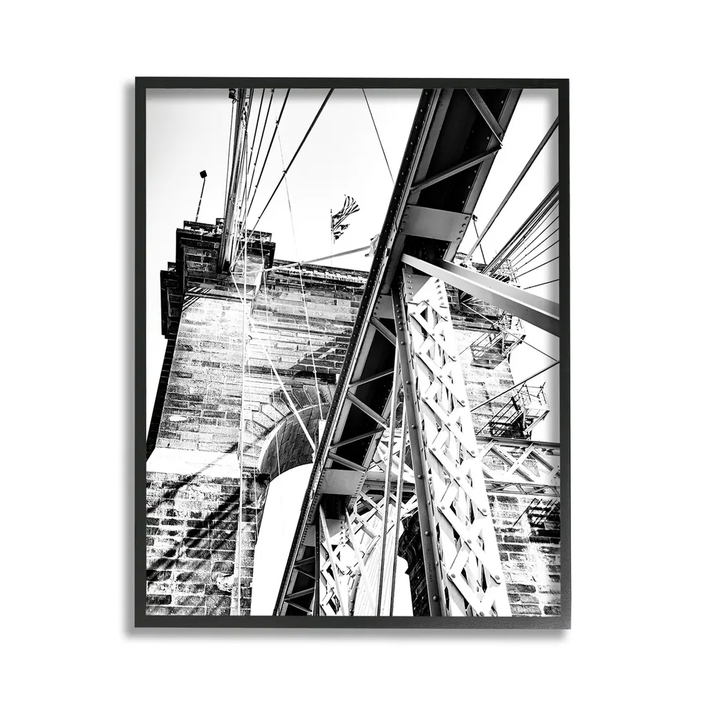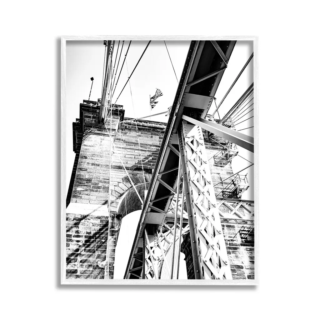 Add dimension to any room with our textured Framed Giclee Artwork. Our framed artwork is securely mounted into a 1.5-inch thick wood grain frame and ready to hang. Frames are available in three alluring styles: black, gray farmhouse and white. In addition, you should check out our oversized options if you want a statement piece. Stupell Wall Art is made in the USA.Features: Dimensions: 11 x 1.5 x 14 FramedFramed Giclee Products are available in the sizes 11"x14", 16"x20" or 24"x30". All Framed Giclee Products have a 1.5" Depth. Wall Art is Ready to Hang with Hardware Free Hanging. No installation required. For Easy Set Up Lean or Layer Artwork on Shelf or Against Wall.Our giclée prints are carefully mounted on a durable MDF backing, and then perfectly finished in a 1.5 inch thick woodgrain frame. Mounted frame colors include black, gray farmhouse and white. Made In USA.Artwork Relates To: Bridge, Brooklyn Bridge, Landmark, Arch, Architecture, City, Urban, MonochromeDesign by Donnie Quillen