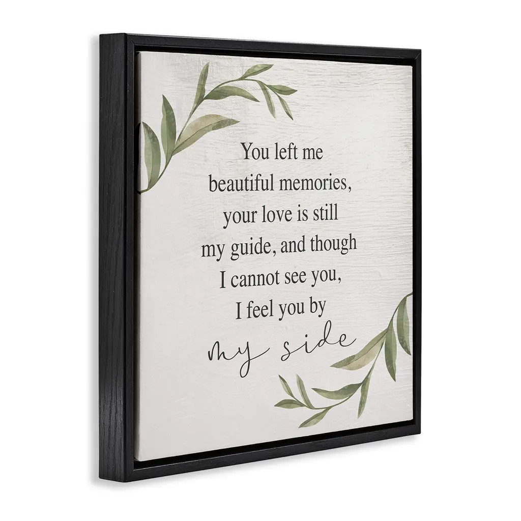 Elevate your home or office to the next level with Stupell Framed Floating Canvas Wall Art. Our premium hand-stretched canvas is mounted securely into a sturdy lightweight frame. The museum-style gap between the wrapped canvas and the box frame gives the illusion of floating artwork. Stupell Wall Art is made in the USA.Features: Dimensions: 18 x 1.7 x 18 Frame, 17 x 1.5 x 17 Canvas ArtFloating Frame Canvas Products are available in sizes 18"x18" and 25"x25". All Floating Frame Canvas Products have a 1.7" Depth.Wall Art is Ready to Hang with Hardware Free Hanging. No Installation required. For Easy Set Up Lean or Layer Artwork on Shelf or Against Wall. Artwork is Permently Fixed into the Frame.Our elevated 1.7" Thick Floating Frame is the perfect complement to our canvas style Wall Art. We use only the highest quality inks in house with industry leading printing solutions. Canvas is hand stretched over a durable wood foundation and then mounted securly into a Modern Box Frame. Made in the USA.Artwork Relates To: Miss You, Grief, Love, Life, Strength, Resilience, Leaf, Leaves, Stems, Branches, By My Side, Sorrowing, Lamentation, MourningDesign by Daphne Polselli