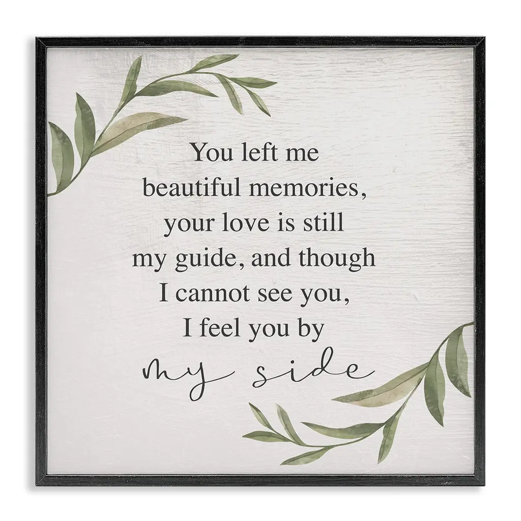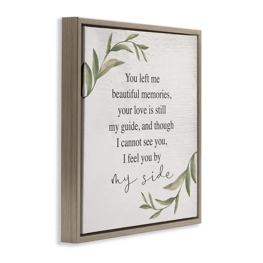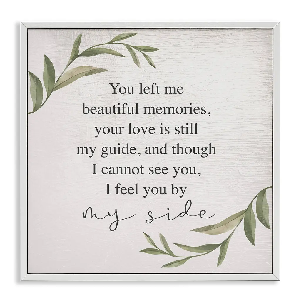 Elevate your home or office to the next level with Stupell Framed Floating Canvas Wall Art. Our premium hand-stretched canvas is mounted securely into a sturdy lightweight frame. The museum-style gap between the wrapped canvas and the box frame gives the illusion of floating artwork. Stupell Wall Art is made in the USA.Features: Dimensions: 18 x 1.7 x 18 Frame, 17 x 1.5 x 17 Canvas ArtFloating Frame Canvas Products are available in sizes 18"x18" and 25"x25". All Floating Frame Canvas Products have a 1.7" Depth.Wall Art is Ready to Hang with Hardware Free Hanging. No Installation required. For Easy Set Up Lean or Layer Artwork on Shelf or Against Wall. Artwork is Permently Fixed into the Frame.Our elevated 1.7" Thick Floating Frame is the perfect complement to our canvas style Wall Art. We use only the highest quality inks in house with industry leading printing solutions. Canvas is hand stretched over a durable wood foundation and then mounted securly into a Modern Box Frame. Made in the USA.Artwork Relates To: Miss You, Grief, Love, Life, Strength, Resilience, Leaf, Leaves, Stems, Branches, By My Side, Sorrowing, Lamentation, MourningDesign by Daphne Polselli