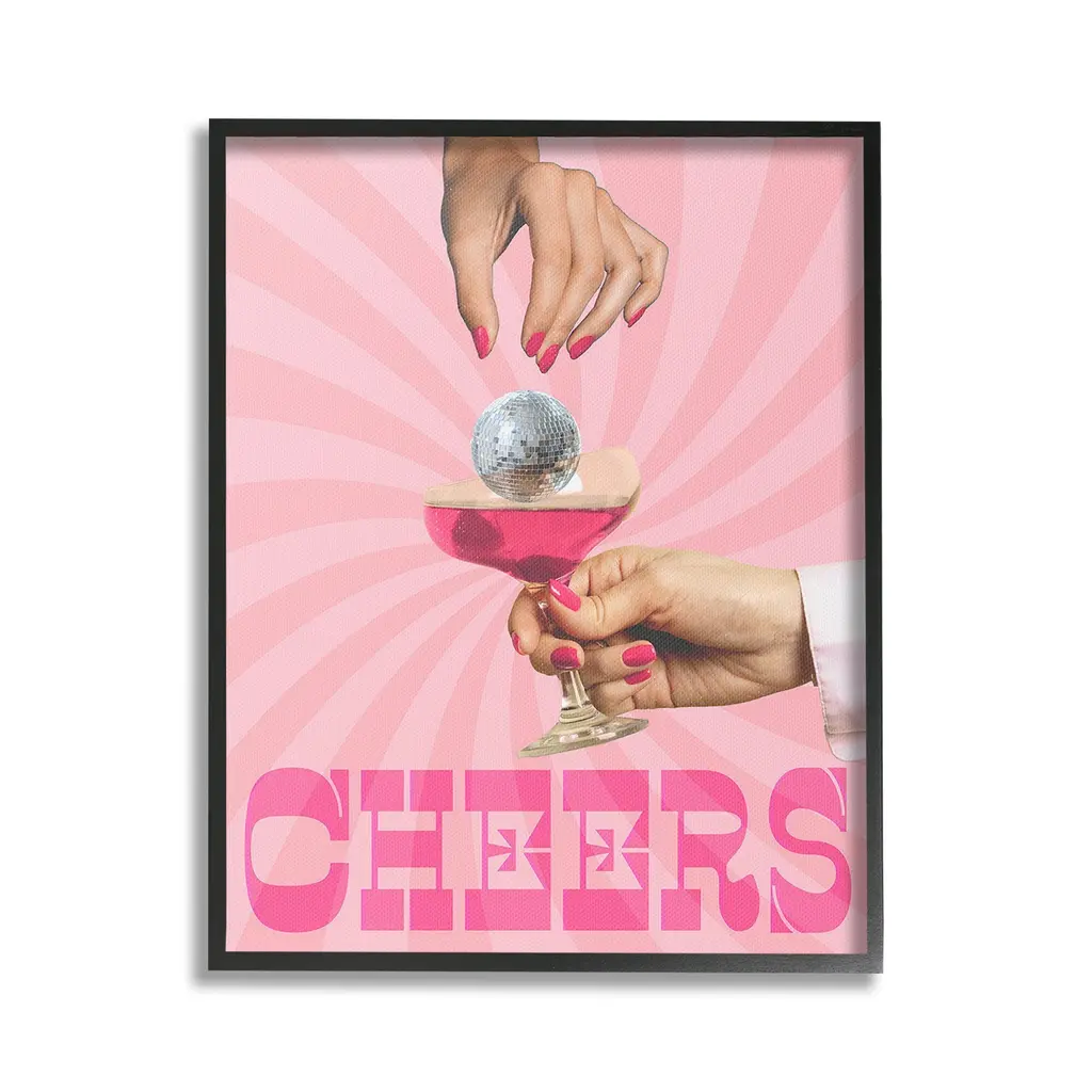 Add dimension to any room with our textured Framed Giclee Artwork. Our framed artwork is securely mounted into a 1.5-inch thick wood grain frame and ready to hang. Frames are available in three alluring styles: black, gray farmhouse and white. In addition, you should check out our oversized options if you want a statement piece. Stupell Wall Art is made in the USA.Features: Dimensions: 11 x 1.5 x 14 FramedFramed Giclee Products are available in the sizes 11"x14", 16"x20" or 24"x30". All Framed Giclee Products have a 1.5" Depth. Wall Art is Ready to Hang with Hardware Free Hanging. No installation required. For Easy Set Up Lean or Layer Artwork on Shelf or Against Wall.Our giclée prints are carefully mounted on a durable MDF backing, and then perfectly finished in a 1.5 inch thick woodgrain frame. Mounted frame colors include black, gray farmhouse and white. Made In USA.Artwork Relates To: Dance, Music, Disco, Pattern, Abstract, Shape, Modern, Glam, Person, Hand, Cocktail, Martini, Cheers DearsDesign by Lil' Rue