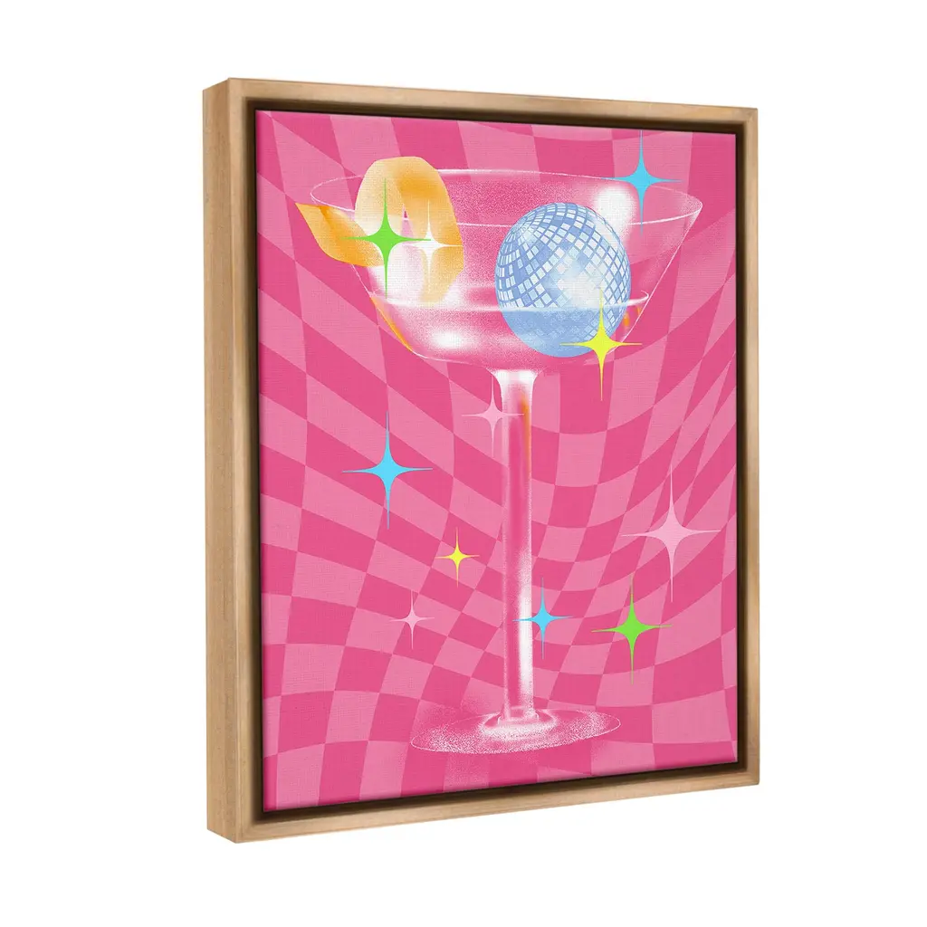Elevate your home or office to the next level with Stupell Framed Floating Canvas Wall Art. Our premium hand-stretched canvas is mounted securely into a sturdy lightweight frame. The museum-style gap between the wrapped canvas and the box frame gives the illusion of floating artwork. Stupell Wall Art is made in the USA.Features: Dimensions: 17 x 1.7 x 21 Frame, 16 x 1.5 x 20 Canvas ArtFloating Frame Canvas Products are available in sizes 17"x21" and 25"x31". All Floating Frame Canvas Products have a 1.7" Depth.Wall Art is Ready to Hang with Hardware Free Hanging. No Installation required. For Easy Set Up Lean or Layer Artwork on Shelf or Against Wall. Artwork is Permently Fixed into the Frame.Our elevated 1.7" Thick Floating Frame is the perfect complement to our canvas style Wall Art. We use only the highest quality inks in house with industry leading printing solutions. Canvas is hand stretched over a durable wood foundation and then mounted securly into a Modern Box Frame. Made in the USA.Artwork Relates To: Dance, Music, Disco, Pattern, Abstract, Shape, Modern, Glam, Person, Hand, Cocktail, MartiniDesign by Lil' Rue