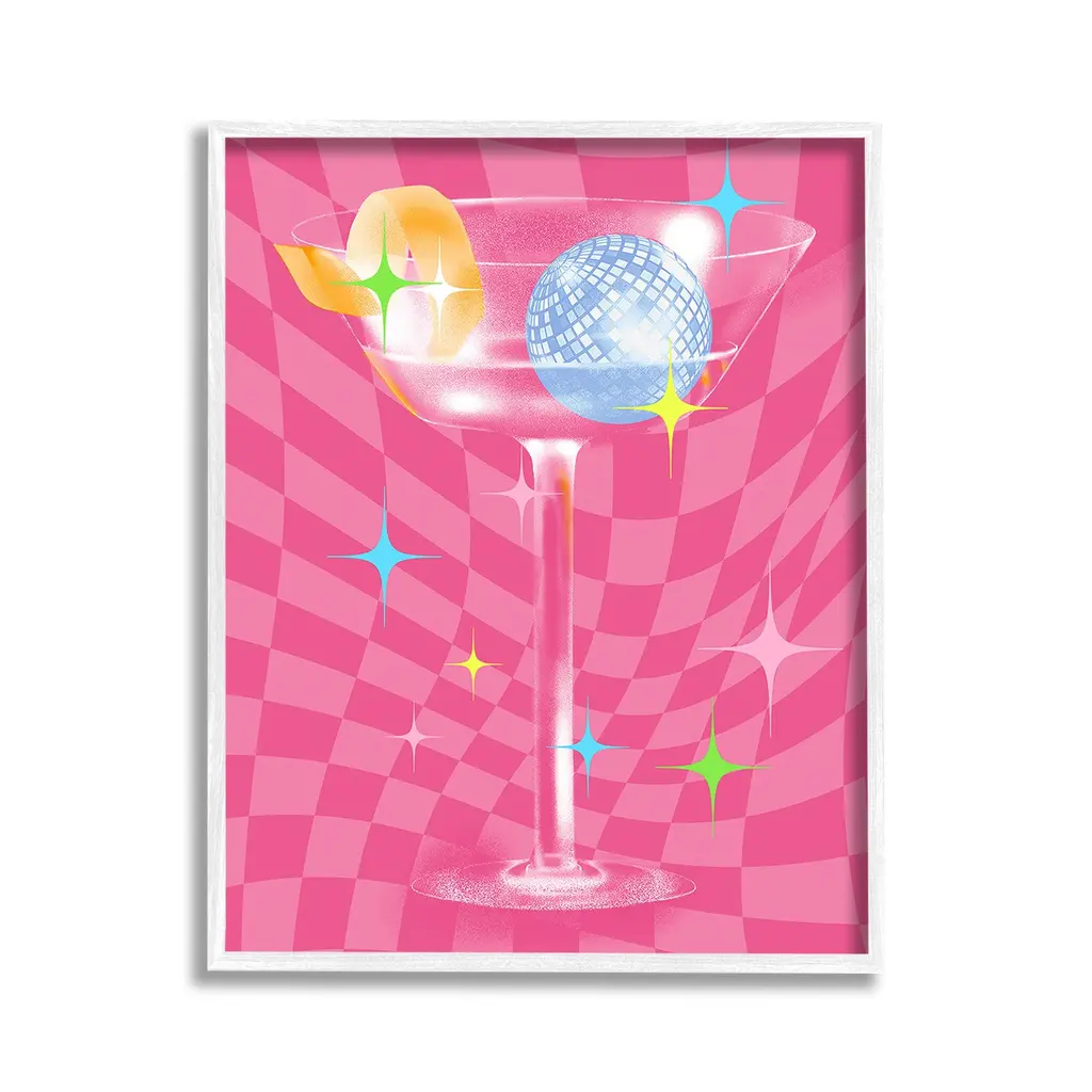 Our wall plaques start as high-quality lithograph prints mounted on durable 0.5-inch thick MDF wood. Each piece is hand finished and comes with a fresh layer of white foil on the sides to give it a crisp, clean look. Plaques arrive ready to hang without installation and come with removable plastic corners to keep them from damage in transit. Stupell Wall Art is made in the USA.Features: Dimensions: 10 x 0.5 x 15 InchesWall Plaque Product Sizes Include 10"x15" and 13"x19". All wall plaque products have a 0.5" Depth. Wall Art is Ready to Hang with Hardware Free Hanging. No installation required. For Easy Set Up Lean or Layer Artwork on Shelf or Against Wall.All of our wall plaques start off as high quality lithograph prints that are then mounted on durable 0.5 inch thick MDF wood. Each piece is hand finished and comes with a fresh layer of foil on the sides to give it a crisp clean look. Made In USA.Artwork Relates To: Dance, Music, Disco, Pattern, Abstract, Shape, Modern, Glam, Person, Hand, Cocktail, MartiniDesign by Lil' Rue