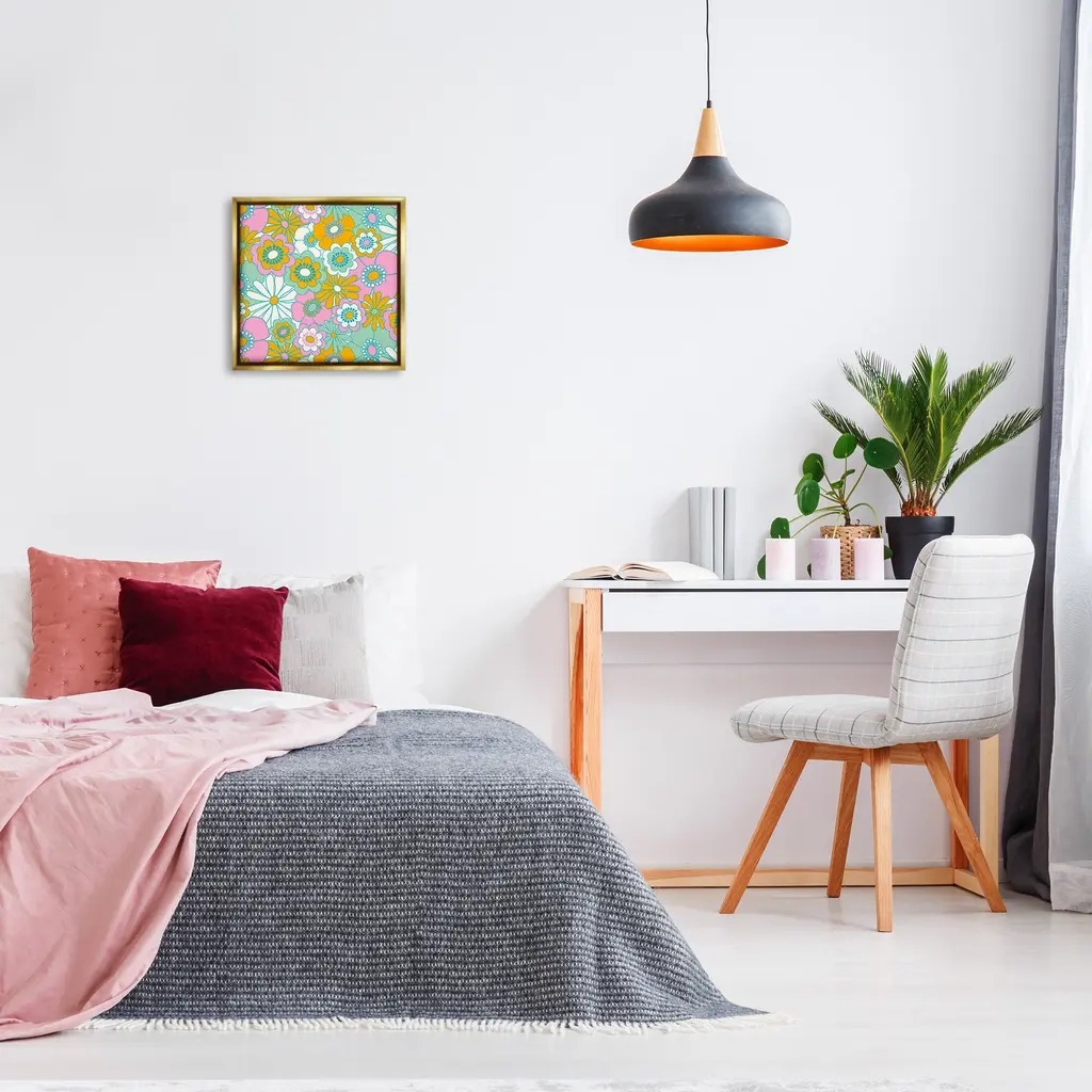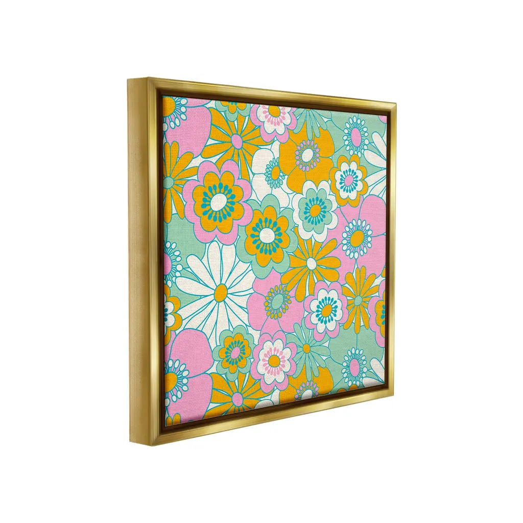 Elevate your home or office to the next level with Stupell Framed Floating Canvas Wall Art. Our premium hand-stretched canvas is mounted securely into a sturdy lightweight frame. The museum-style gap between the wrapped canvas and the box frame gives the illusion of floating artwork. Stupell Wall Art is made in the USA.Features: Dimensions: 18 x 1.7 x 18 Frame, 17 x 1.5 x 17 Canvas ArtFloating Frame Canvas Products are available in sizes 18"x18" and 25"x25". All Floating Frame Canvas Products have a 1.7" Depth.Wall Art is Ready to Hang with Hardware Free Hanging. No Installation required. For Easy Set Up Lean or Layer Artwork on Shelf or Against Wall. Artwork is Permently Fixed into the Frame.Our elevated 1.7" Thick Floating Frame is the perfect complement to our canvas style Wall Art. We use only the highest quality inks in house with industry leading printing solutions. Canvas is hand stretched over a durable wood foundation and then mounted securly into a Modern Box Frame. Made in the USA.Artwork Relates To: Pattern, Floral, Daisy, Flower, Plant, Groovy, Retro, ModernDesign by Carrie Cantwell