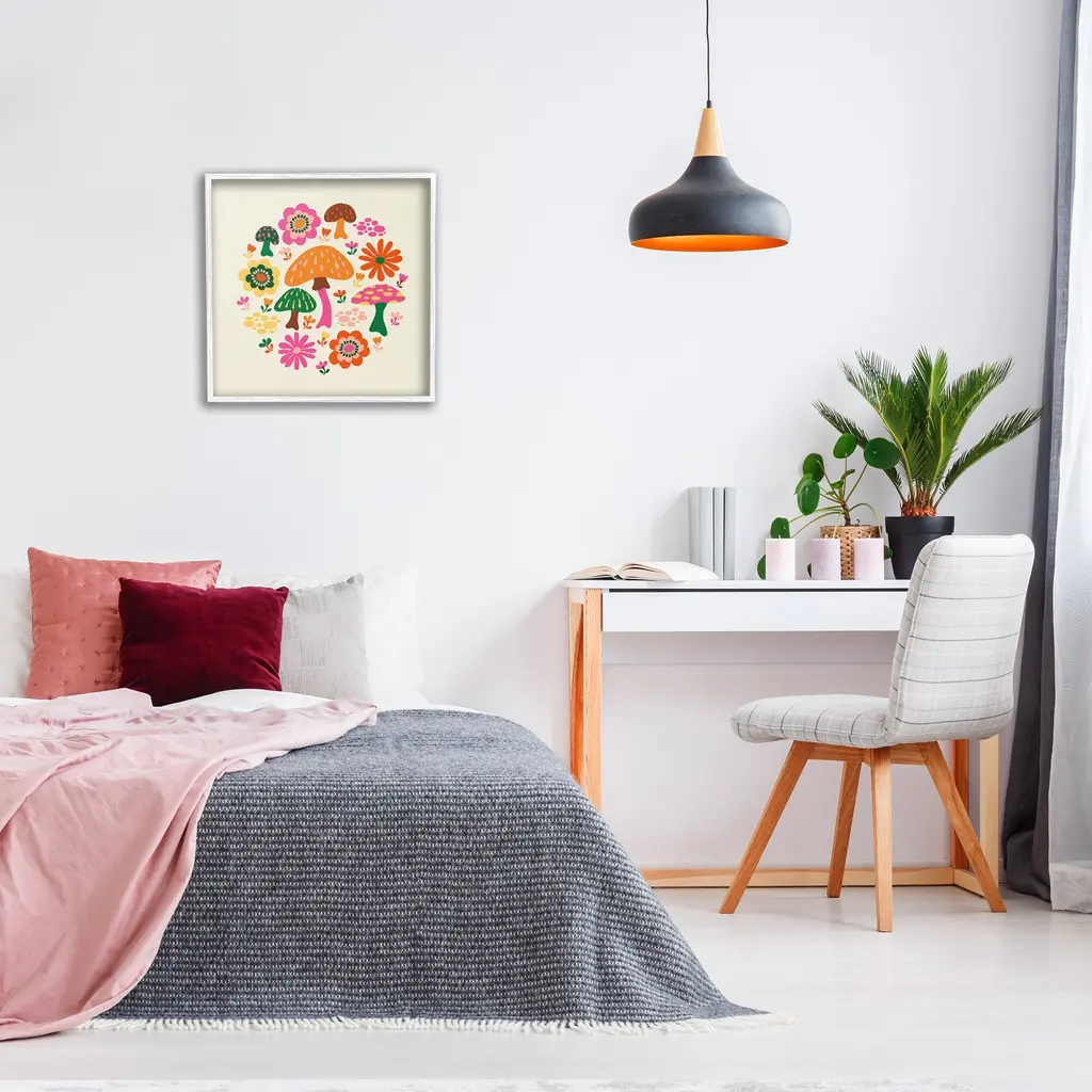Add dimension to any room with our textured Framed Giclee Artwork. Our framed artwork is securely mounted into a 1.5-inch thick wood grain frame and ready to hang. Frames are available in three alluring styles: black, gray farmhouse and white. In addition, you should check out our oversized options if you want a statement piece. Stupell Wall Art is made in the USA.Features: Dimensions: 12 x 1.5 x 12 FramedFramed Giclee Product Sizes Include 12"x12", 17"x17", and 24"x24". Framed Giclee Products have a 1.5" Depth. Wall Art is Ready to Hang with Hardware Free Hanging. No installation required. For Easy Set Up Lean or Layer Artwork on Shelf or Against Wall.Our giclée prints are carefully mounted on a durable MDF backing, and then perfectly finished in a 1.5 inch thick woodgrain frame. Mounted frame colors include black, gray farmhouse and white. Made In USA.Artwork Relates To: Pattern, Fungus, Plant, Floral, Flower, Mushroom, Groovy, Botanical, RetroDesign by Carrie Cantwell
