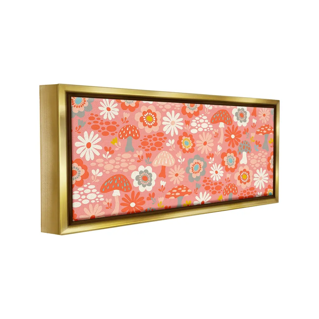 Elevate your home or office to the next level with Stupell Framed Floating Canvas Wall Art. Our premium hand-stretched canvas is mounted securely into a sturdy lightweight frame. The museum-style gap between the wrapped canvas and the box frame gives the illusion of floating artwork. Stupell Wall Art is made in the USA.Features: Dimensions: 25 x 1.7 x 11 Frame, 24 x 1.5 x 10 Canvas ArtFloating Frame Canvas Products are available in sizes 25"x11" and 31"x14". All Floating Frame Canvas Products have a 1.7" Depth.Wall Art is Ready to Hang with Hardware Free Hanging. No Installation required. For Easy Set Up Lean or Layer Artwork on Shelf or Against Wall. Artwork is Permently Fixed into the Frame.Our elevated 1.7" Thick Floating Frame is the perfect complement to our canvas style Wall Art. We use only the highest quality inks in house with industry leading printing solutions. Canvas is hand stretched over a durable wood foundation and then mounted securly into a Modern Box Frame. Made in the USA.Artwork Relates To: Pattern, Fungus, Plant, Floral, Flower, Mushroom, Groovy, Botanical, RetroDesign by Carrie Cantwell