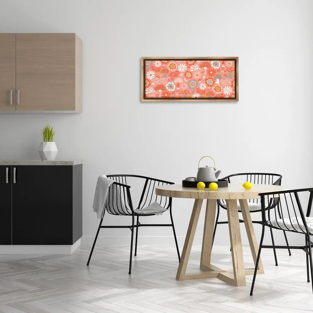 Elevate your home or office to the next level with Stupell Framed Floating Canvas Wall Art. Our premium hand-stretched canvas is mounted securely into a sturdy lightweight frame. The museum-style gap between the wrapped canvas and the box frame gives the illusion of floating artwork. Stupell Wall Art is made in the USA.Features: Dimensions: 25 x 1.7 x 11 Frame, 24 x 1.5 x 10 Canvas ArtFloating Frame Canvas Products are available in sizes 25"x11" and 31"x14". All Floating Frame Canvas Products have a 1.7" Depth.Wall Art is Ready to Hang with Hardware Free Hanging. No Installation required. For Easy Set Up Lean or Layer Artwork on Shelf or Against Wall. Artwork is Permently Fixed into the Frame.Our elevated 1.7" Thick Floating Frame is the perfect complement to our canvas style Wall Art. We use only the highest quality inks in house with industry leading printing solutions. Canvas is hand stretched over a durable wood foundation and then mounted securly into a Modern Box Frame. Made in the USA.Artwork Relates To: Pattern, Fungus, Plant, Floral, Flower, Mushroom, Groovy, Botanical, RetroDesign by Carrie Cantwell