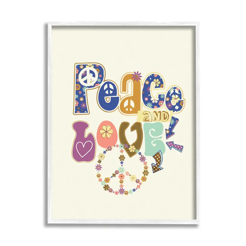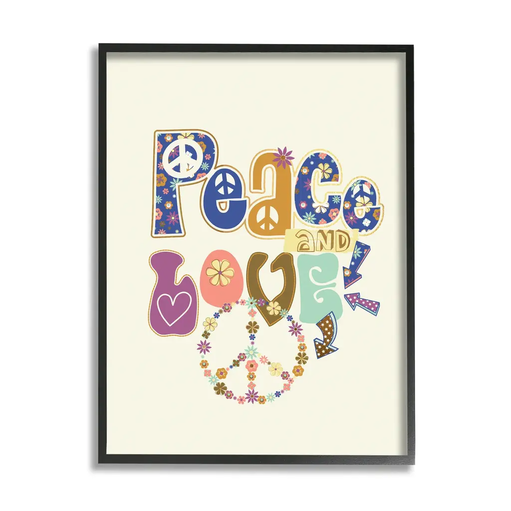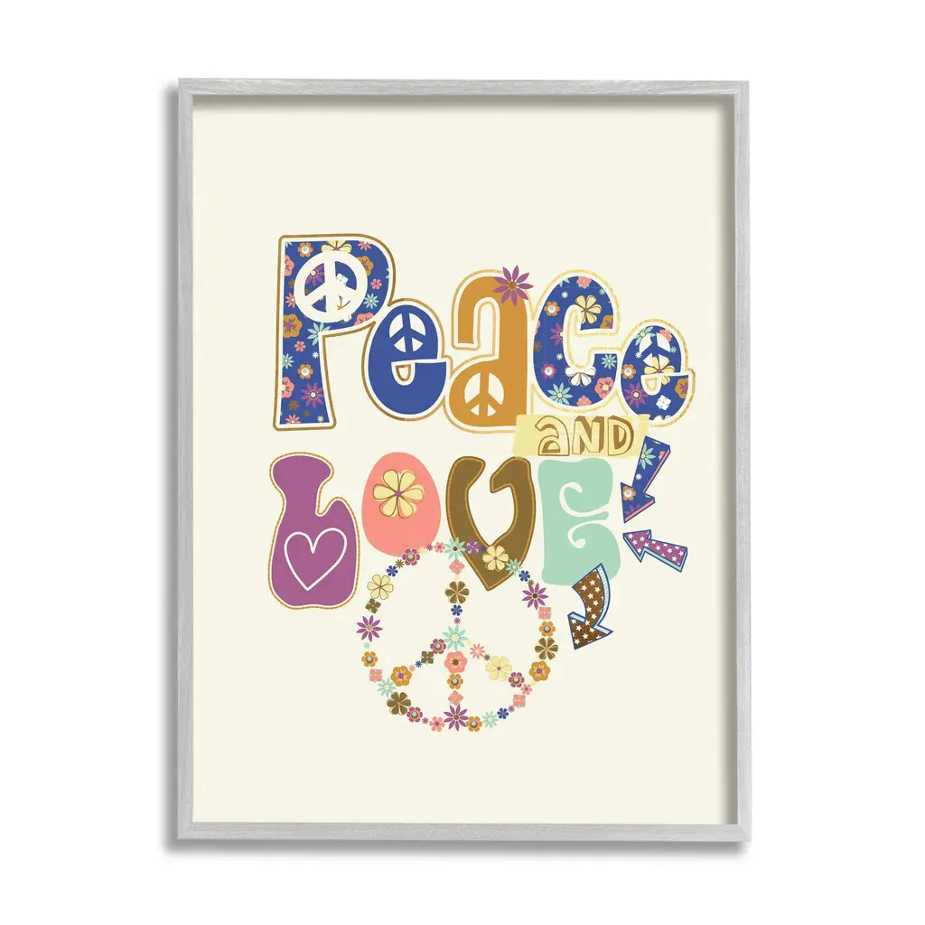 Stupell Groovy Peace And Love Sentiments Floral Peace Sign Framed Wall Art - 11 X 14 - Grey