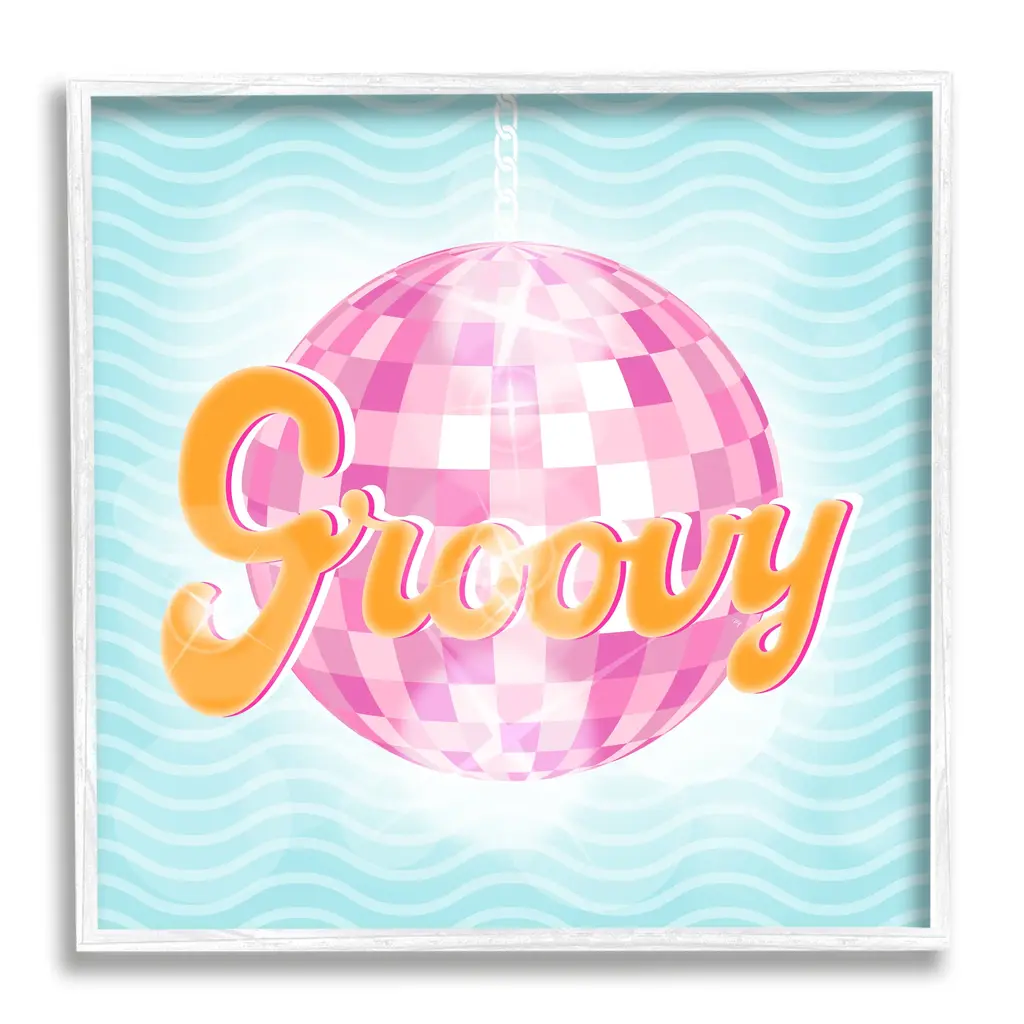 Add dimension to any room with our textured Framed Giclee Artwork. Our framed artwork is securely mounted into a 1.5-inch thick wood grain frame and ready to hang. Frames are available in three alluring styles: black, gray farmhouse and white. In addition, you should check out our oversized options if you want a statement piece. Stupell Wall Art is made in the USA.Features: Dimensions: 12 x 1.5 x 12 FramedFramed Giclee Sizes Include Standard: 12 x 1.5 x 12 Large: 17 x 1.5 x 17 Oversized: 24 x 1.5 x 24Wall Art is Ready to Hang - No Installation or Hardware Needed. For Easy Set Up Lean or Layer Artwork on Shelf or Against Wall.Our giclée prints are carefully mounted on a durable MDF backing, and then perfectly finished in a 1.5 inch thick woodgrain frame. Mounted frame colors include black, gray farmhouse and white. Made In USA.Artwork Relates To: Disco Ball, Retro, Bold, Pattern, GroovyDesign by Martina Pavlova
