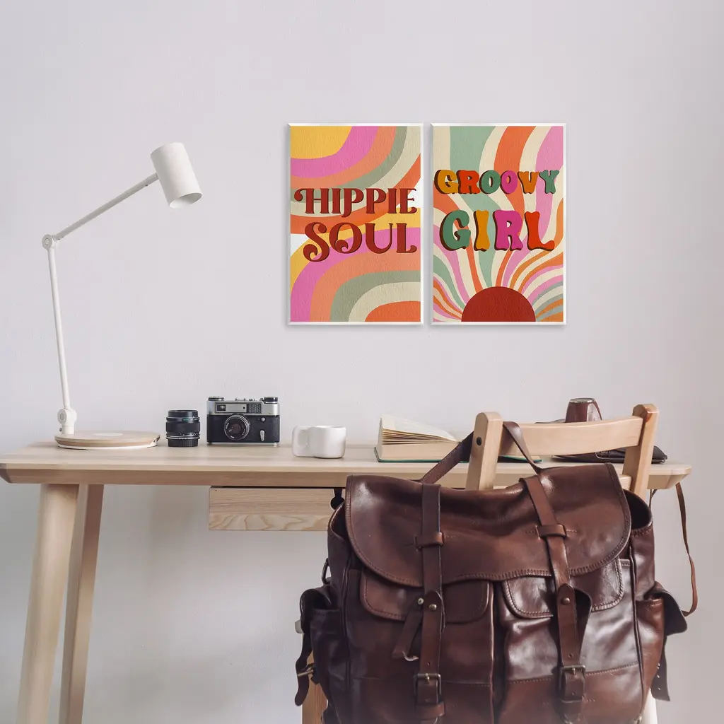 Fill any space with Stupell Wall Art Sets. Our wall plaques start as high-quality lithograph prints mounted on durable 0.5-inch thick MDF wood. Each piece is hand finished and comes with a fresh layer of white foil on the sides to give it a crisp, clean look. Plaques arrive ready to hang without installation and come with removable plastic corners to keep them from damage in transit. Stupell Wall Art is made in the USA.Features: Dimensions: 2 Piece Set, Each Panel is 10 x 0.5 x 15 InchesTwo Piece Wall Plaque Sets are available as 10"x15" or 13"x19" Panels. All Wall Art Plaques have a 0.5" Depth.Wall Art is Ready to Hang with Hardware Free Hanging. No installation required. For Easy Set Up Lean or Layer Artwork on Shelf or Against Wall.All of our wall plaques start off as high quality lithograph prints that are then mounted on durable 0.5 inch thick MDF wood. Each piece is hand finished and comes with a fresh layer of foil on the sides to give it a crisp clean look. Made In USA.Artwork Relates To: Pattern, Stripes, Sun, Waves, Rays, Groovy, Retro, Hippie Soul, Groovy GirlDesign by Regina Moore