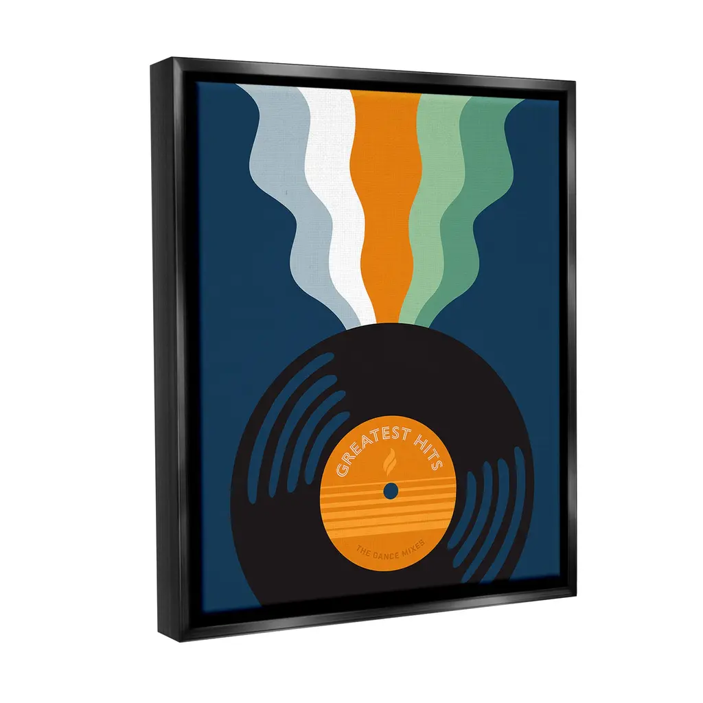 Elevate your home or office to the next level with Stupell Framed Floating Canvas Wall Art. Our premium hand-stretched canvas is mounted securely into a sturdy lightweight frame. The museum-style gap between the wrapped canvas and the box frame gives the illusion of floating artwork. Stupell Wall Art is made in the USA.Features: Dimensions: 17 x 1.7 x 21 Frame, 16 x 1.5 x 20 Canvas ArtFloating Frame Canvas Products are available in sizes 17"x21" and 25"x31". All Floating Frame Canvas Products have a 1.7" Depth.Wall Art is Ready to Hang with Hardware Free Hanging. No Installation required. For Easy Set Up Lean or Layer Artwork on Shelf or Against Wall. Artwork is Permently Fixed into the Frame.Our elevated 1.7" Thick Floating Frame is the perfect complement to our canvas style Wall Art. We use only the highest quality inks in house with industry leading printing solutions. Canvas is hand stretched over a durable wood foundation and then mounted securly into a Modern Box Frame. Made in the USA.Artwork Relates To: Record, Vinyl Record, Music, Groovy, Vintage, Modern, Abstract, Geometric, PatternDesign by Laura Marr
