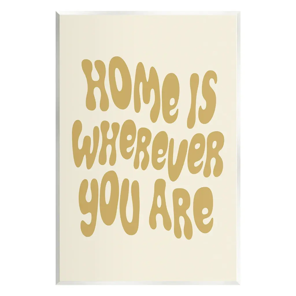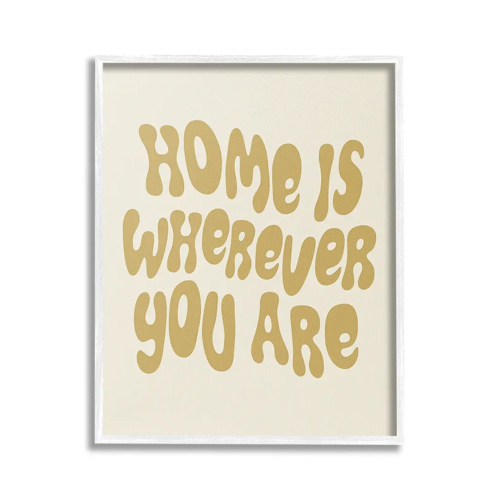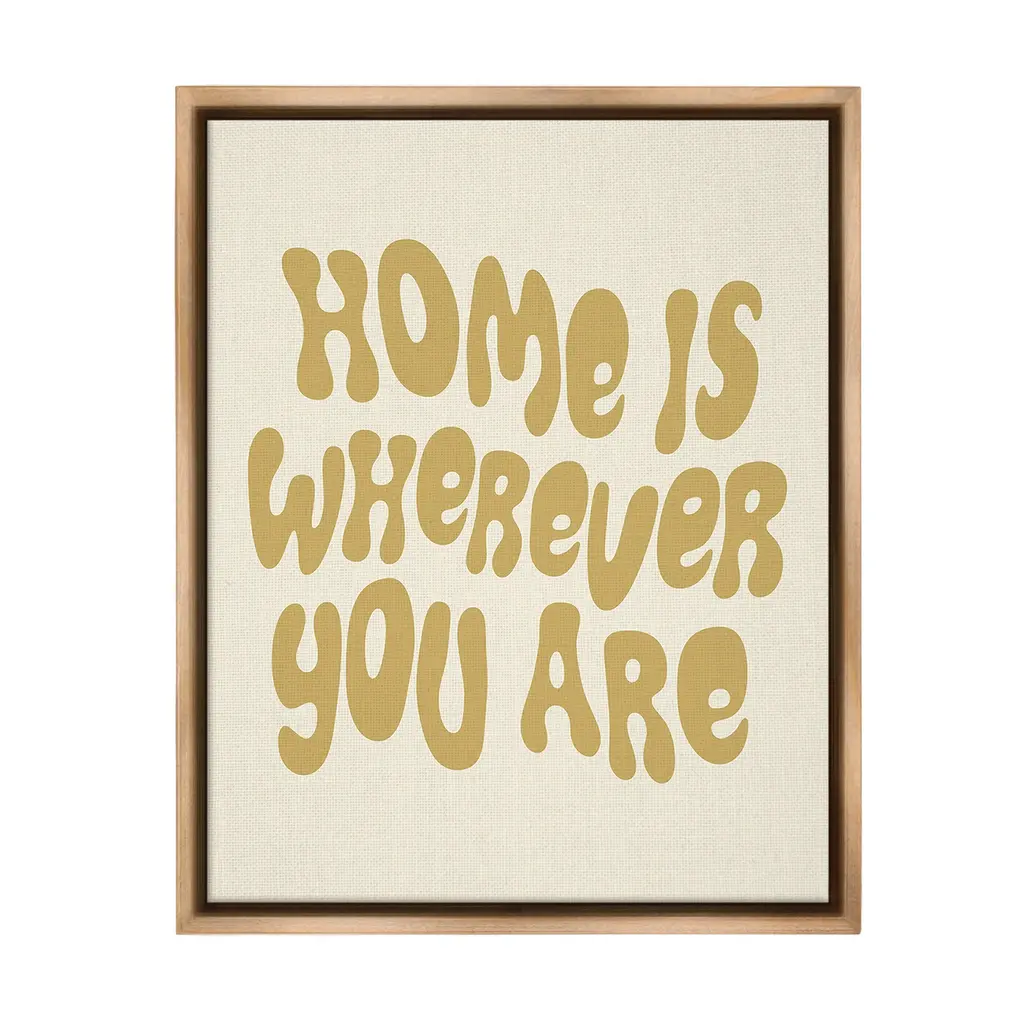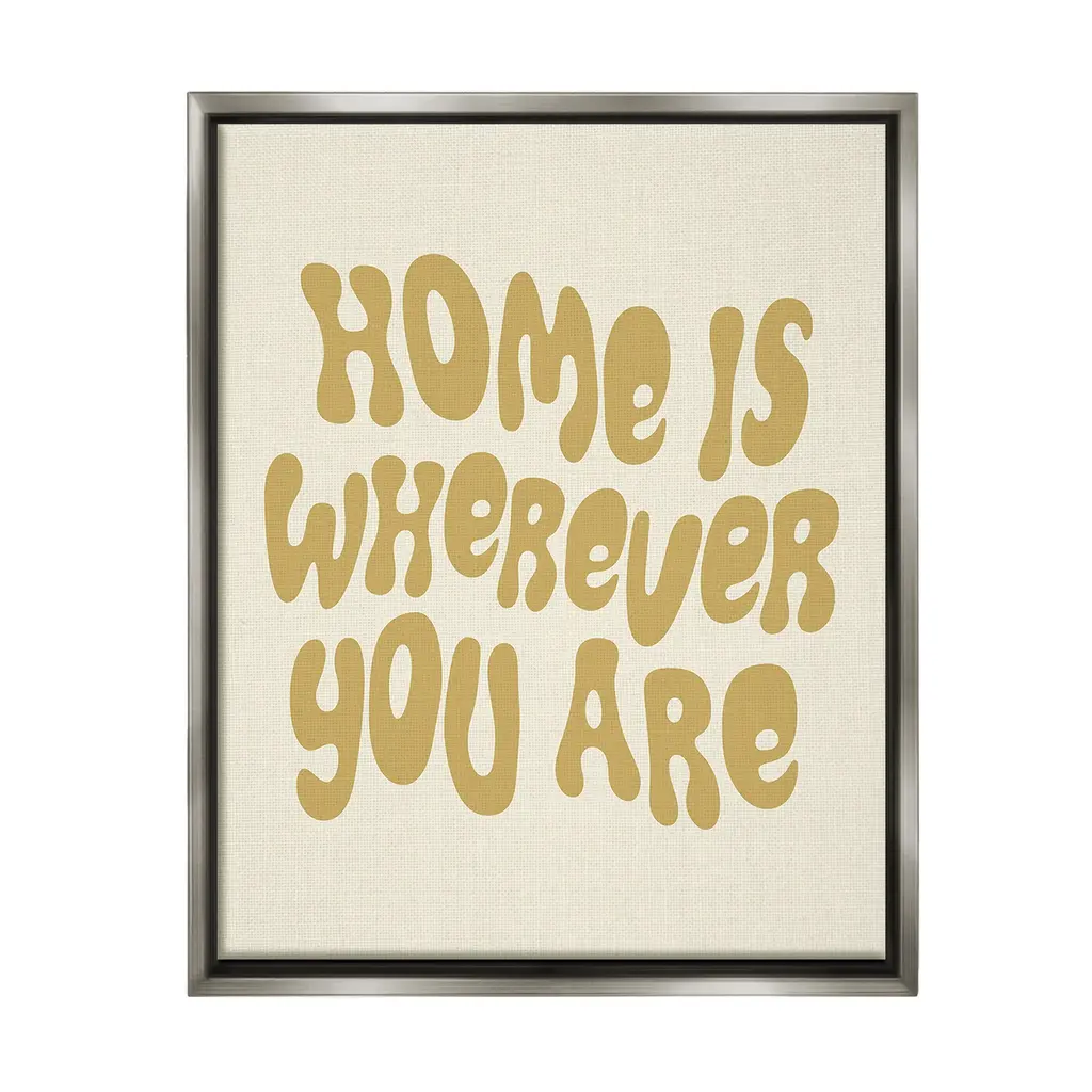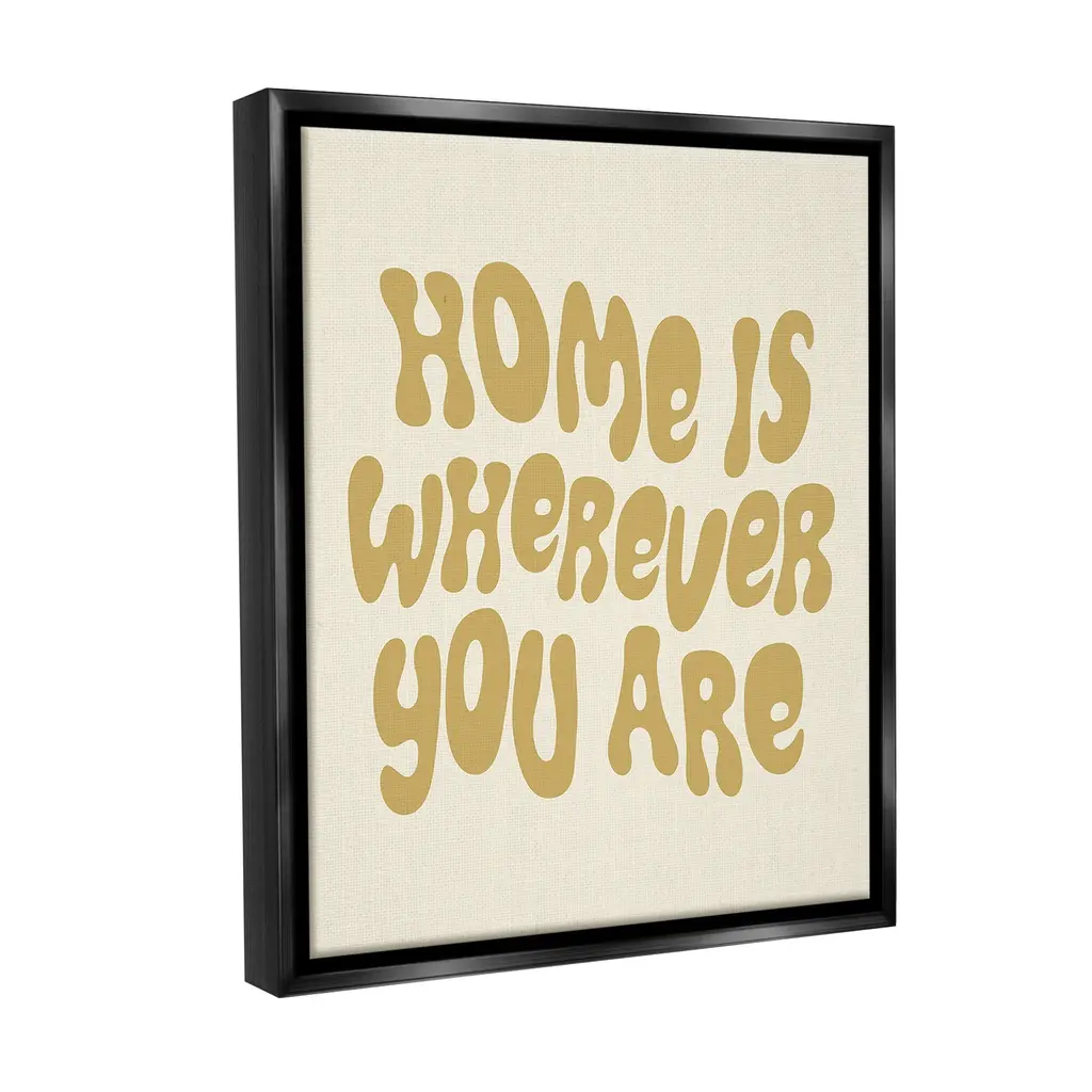 Elevate your home or office to the next level with Stupell Framed Floating Canvas Wall Art. Our premium hand-stretched canvas is mounted securely into a sturdy lightweight frame. The museum-style gap between the wrapped canvas and the box frame gives the illusion of floating artwork. Stupell Wall Art is made in the USA.Features: Dimensions: 17 x 1.7 x 21 Frame, 16 x 1.5 x 20 Canvas ArtFloating Frame Canvas Products are available in sizes 17"x21" and 25"x31". All Floating Frame Canvas Products have a 1.7" Depth.Wall Art is Ready to Hang with Hardware Free Hanging. No Installation required. For Easy Set Up Lean or Layer Artwork on Shelf or Against Wall. Artwork is Permently Fixed into the Frame.Our elevated 1.7" Thick Floating Frame is the perfect complement to our canvas style Wall Art. We use only the highest quality inks in house with industry leading printing solutions. Canvas is hand stretched over a durable wood foundation and then mounted securly into a Modern Box Frame. Made in the USA.Artwork Relates To: Phrase, Romance, Groovy, Typography, Home is Wherever You AreDesign by Victoria Barnes