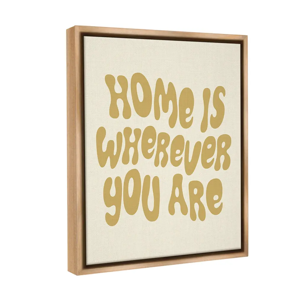 Elevate your home or office to the next level with Stupell Framed Floating Canvas Wall Art. Our premium hand-stretched canvas is mounted securely into a sturdy lightweight frame. The museum-style gap between the wrapped canvas and the box frame gives the illusion of floating artwork. Stupell Wall Art is made in the USA.Features: Dimensions: 17 x 1.7 x 21 Frame, 16 x 1.5 x 20 Canvas ArtFloating Frame Canvas Products are available in sizes 17"x21" and 25"x31". All Floating Frame Canvas Products have a 1.7" Depth.Wall Art is Ready to Hang with Hardware Free Hanging. No Installation required. For Easy Set Up Lean or Layer Artwork on Shelf or Against Wall. Artwork is Permently Fixed into the Frame.Our elevated 1.7" Thick Floating Frame is the perfect complement to our canvas style Wall Art. We use only the highest quality inks in house with industry leading printing solutions. Canvas is hand stretched over a durable wood foundation and then mounted securly into a Modern Box Frame. Made in the USA.Artwork Relates To: Phrase, Romance, Groovy, Typography, Home is Wherever You AreDesign by Victoria Barnes