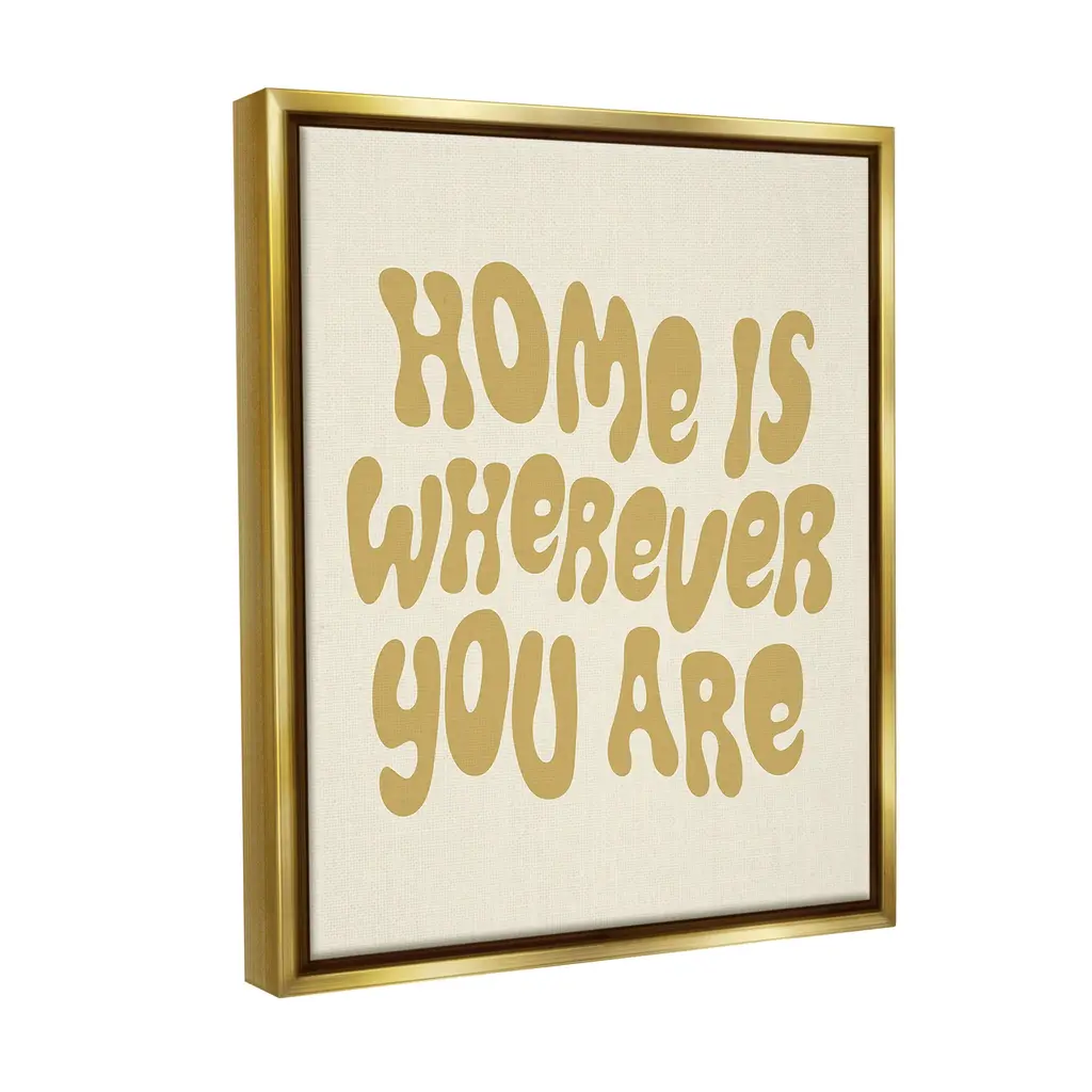 Elevate your home or office to the next level with Stupell Framed Floating Canvas Wall Art. Our premium hand-stretched canvas is mounted securely into a sturdy lightweight frame. The museum-style gap between the wrapped canvas and the box frame gives the illusion of floating artwork. Stupell Wall Art is made in the USA.Features: Dimensions: 17 x 1.7 x 21 Frame, 16 x 1.5 x 20 Canvas ArtFloating Frame Canvas Products are available in sizes 17"x21" and 25"x31". All Floating Frame Canvas Products have a 1.7" Depth.Wall Art is Ready to Hang with Hardware Free Hanging. No Installation required. For Easy Set Up Lean or Layer Artwork on Shelf or Against Wall. Artwork is Permently Fixed into the Frame.Our elevated 1.7" Thick Floating Frame is the perfect complement to our canvas style Wall Art. We use only the highest quality inks in house with industry leading printing solutions. Canvas is hand stretched over a durable wood foundation and then mounted securly into a Modern Box Frame. Made in the USA.Artwork Relates To: Phrase, Romance, Groovy, Typography, Home is Wherever You AreDesign by Victoria Barnes