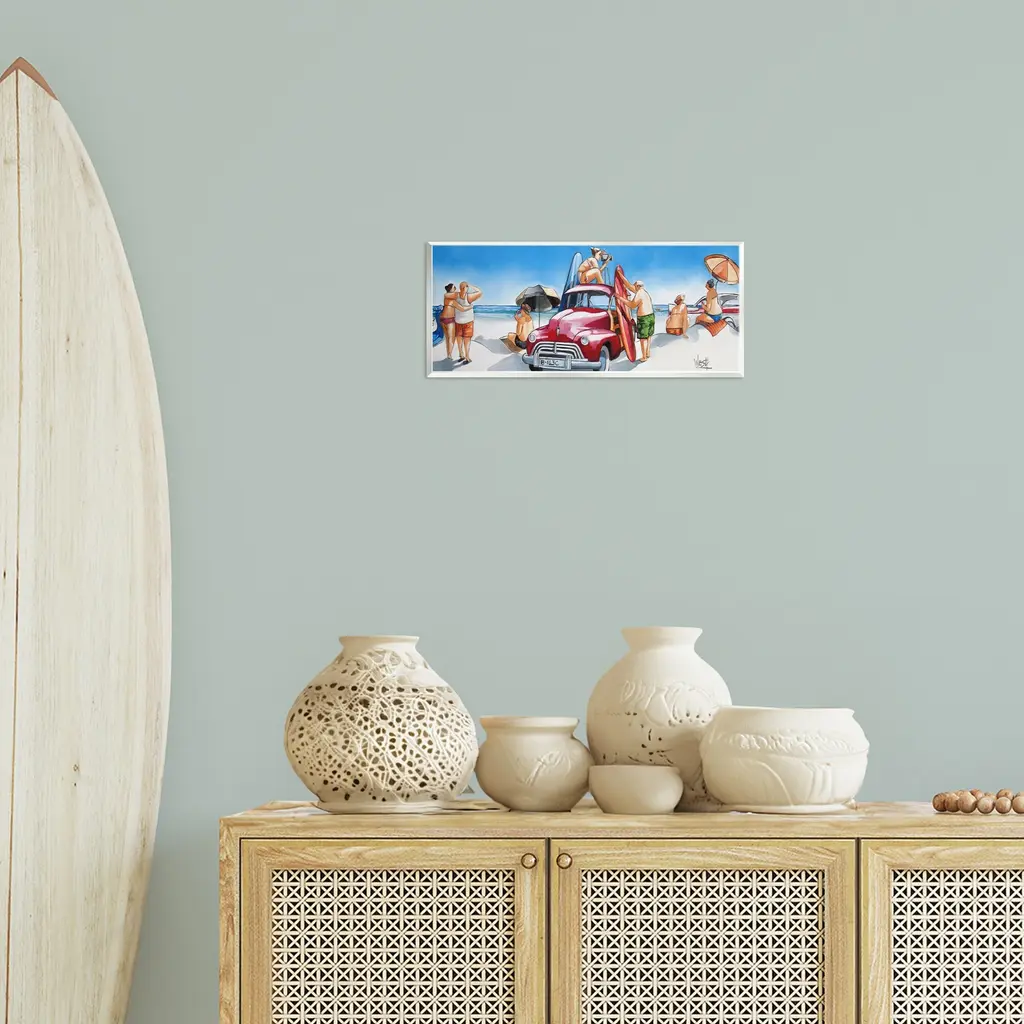 Our wall plaques start as high-quality lithograph prints mounted on durable 0.5-inch thick MDF wood. Each piece is hand finished and comes with a fresh layer of white foil on the sides to give it a crisp, clean look. Plaques arrive ready to hang without installation and come with removable plastic corners to keep them from damage in transit. Stupell Wall Art is made in the USA.Features: Dimensions: 17 x 0.5 x 7 InchesWall Art is Ready to Hang with Hardware Free Hanging. No installation required. For Easy Set Up Lean or Layer Artwork on Shelf or Against Wall.All of our wall plaques start off as high quality lithograph prints that are then mounted on durable 0.5 inch thick MDF wood. Each piece is hand finished and comes with a fresh layer of foil on the sides to give it a crisp clean look. Made In USA.Artwork Relates To: Landscape, Nautical, Beach, People, Person, Surfboard, CarDesign by Ronald West