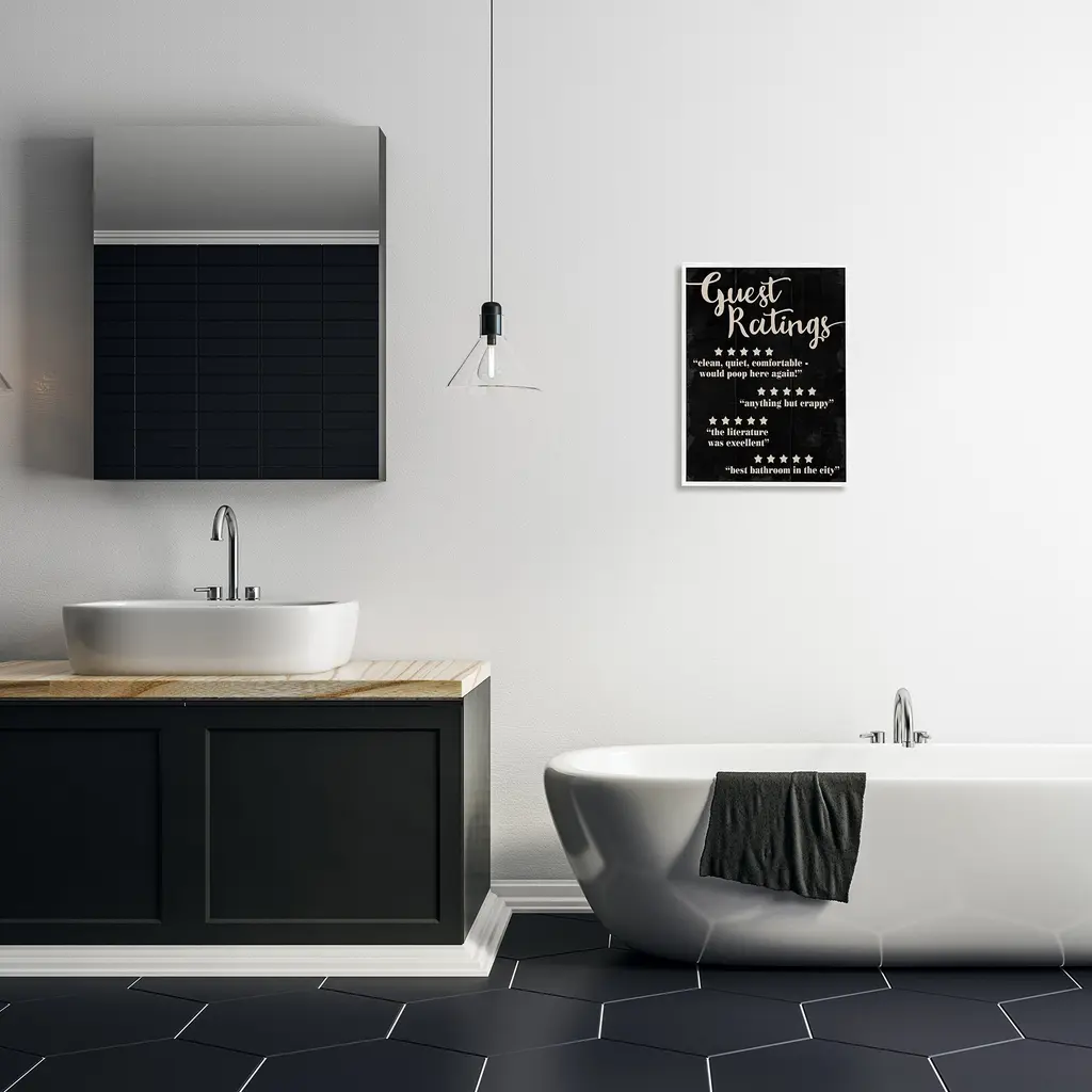 Stupell Guest Rating Five Star Bathroom Black Funny Word Design Black Framed Wall Art, Proudly Made In Usa - 16 X 20 - White